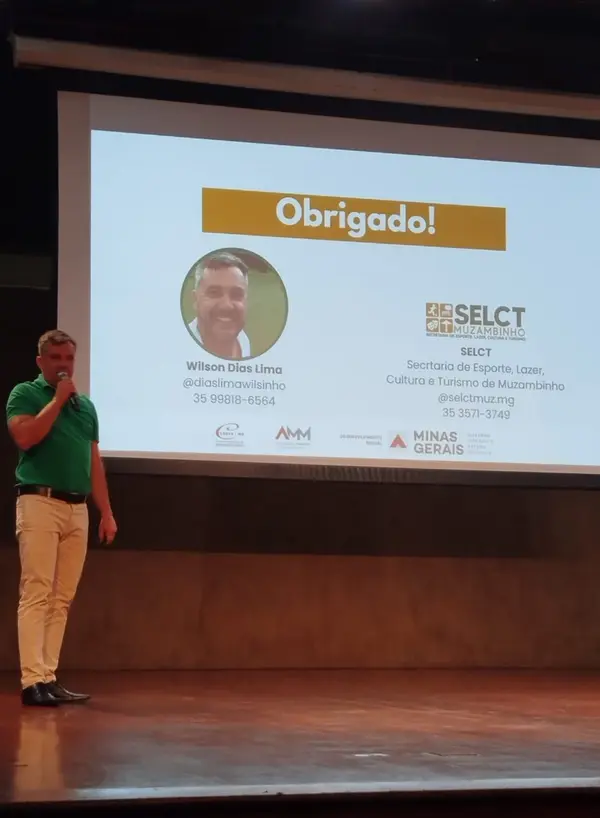 O Secretário Municipal de Esportes de Muzambinho, Wilson Dias Lima, mais conhecido como Wilsinho Lima, foi um dos grandes destaques do evento. Com amplo conhecimento sobre a gestão esportiva municipal, ele apresentou os avanços significativos do ICMS Esportivo em Muzambinho desde 2021, destacando as iniciativas implementadas em diversas modalidades, categorias e espaços públicos.