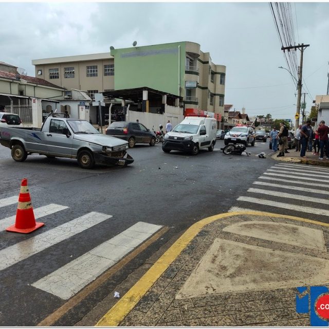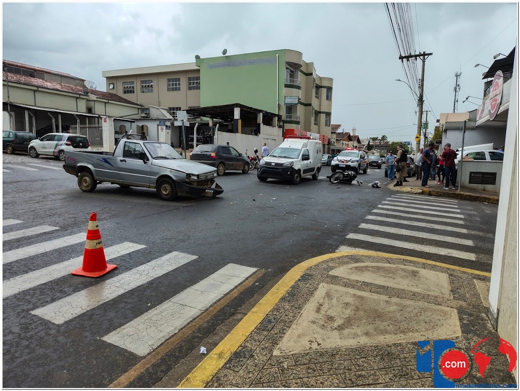 Um acidente entre uma caminhonete e uma motocicleta foi registrado no início da tarde desta terça-feira (09), por volta das 14h, no cruzamento entre a Rua Capitão Heliodoro Mariano e a Rua Marechal Deodoro, nas proximidades do Supermercado Poscidônio.