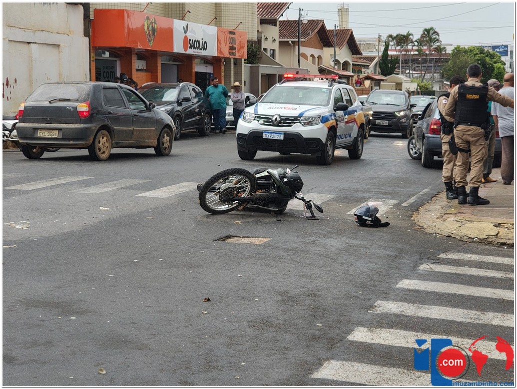 Acidente em cruzamento movimentado deixa motociclista ferido em Muzambinho