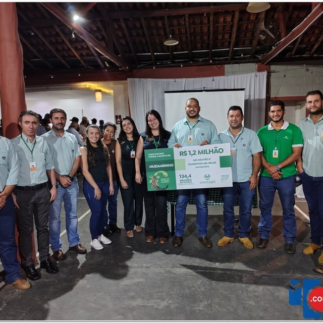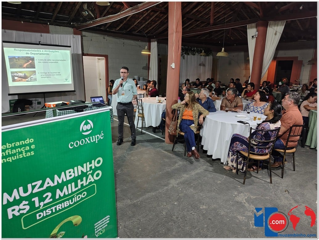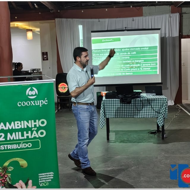 Nesta segunda-feira, 14 de abril, a Cooxupé – Cooperativa Regional de Cafeicultores em Guaxupé – promoveu uma importante reunião com os cafeicultores de Muzambinho, no Cesário’s Restaurante, com o objetivo de compartilhar resultados, orientações e fortalecer ainda mais os laços com seus cooperados. O encontro foi marcado pela entrega dos cheques referentes à distribuição de lucros, com destaque para os R$ 1,2 milhão destinados exclusivamente aos produtores do município.