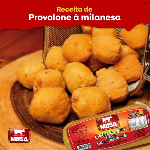 Passar o provolone Musa no ovo e, depois, na farinha de trigo. Passar novamente no ovo, porém, depois, na farinha de rosca. Feito isso, fritar na fritadeira em óleo bem quente. Quando estiver pronto dispor em uma travessa.