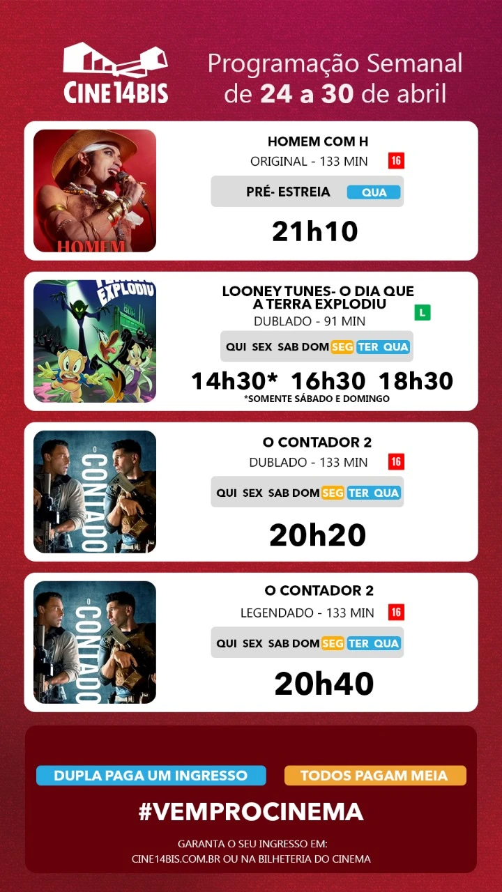 Ingressos à venda: https://linktr.ee/cinema14bis