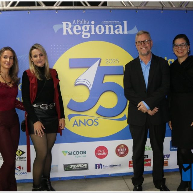 A noite deste último sabado, 24/05, foi marcada por celebração, reencontros e reconhecimento durante a realização do maior evento político e empresarial da região, promovido em comemoração aos 35 anos de atuação do jornal A Folha Regional. O encontro reuniu autoridades políticas, empresários, profissionais da imprensa e lideranças de diversas cidades do Sul de Minas, consolidando mais uma vez o papel de destaque do semanário no cenário regional.