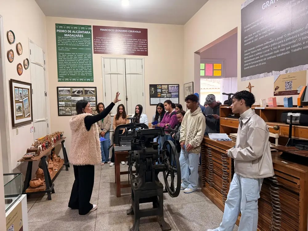 Acompanhados pelas professoras Fernanda Messias, Miriam, Cláudia e Josiene, os estudantes participaram de um tour conduzido pelos agentes culturais Camila Fernandes e Giovani Arantes. A visita começou no Museu Francisco Leonardo Ceravolo, onde os alunos discutiram a formação histórica da cidade, com foco na importância das origens indígenas e quilombolas.