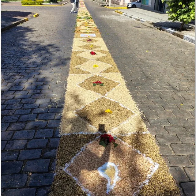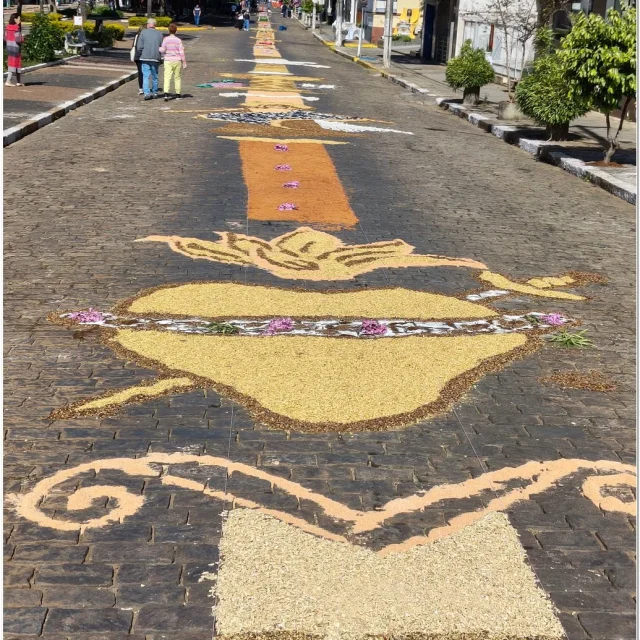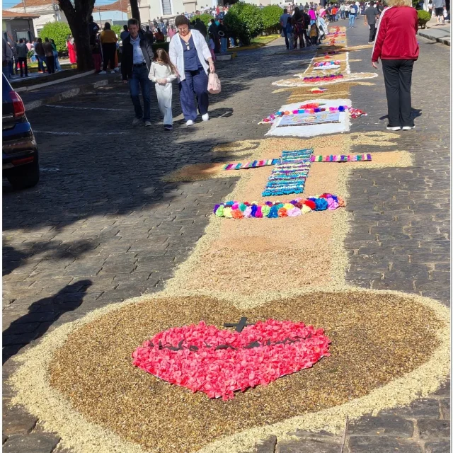 A tradição dos tapetes remonta a práticas populares que unem fé e arte, permitindo que os fiéis expressem sua devoção de maneira concreta e comunitária. Em Muzambinho, essa tradição se mantém viva e forte, reunindo famílias, grupos de jovens, pastorais e movimentos da igreja, que se dedicam desde a madrugada à montagem dos tapetes.