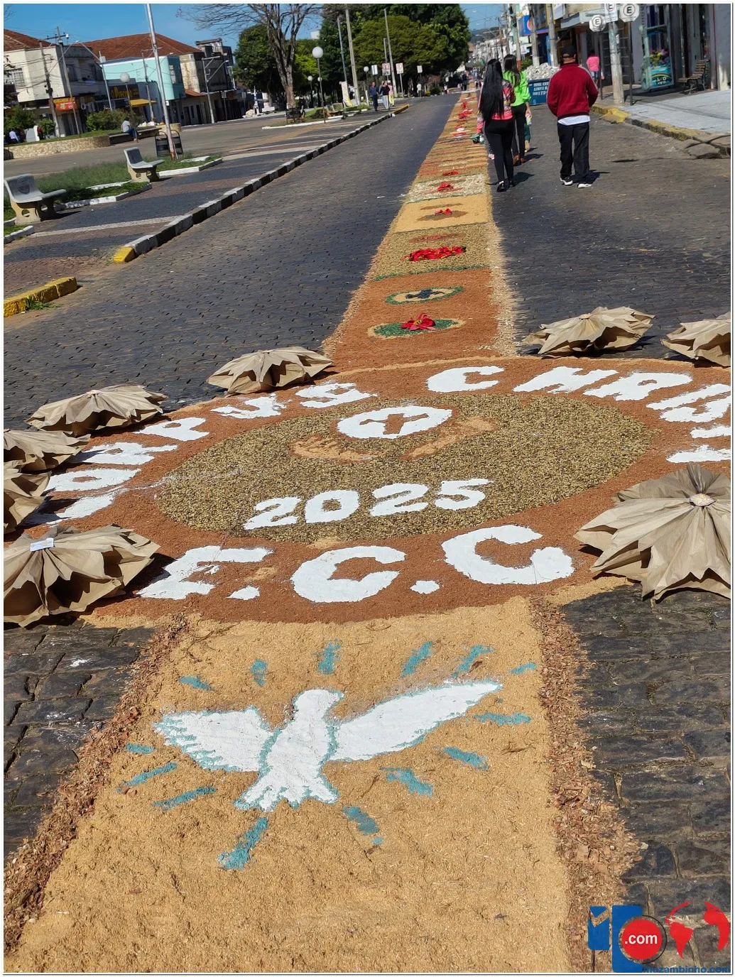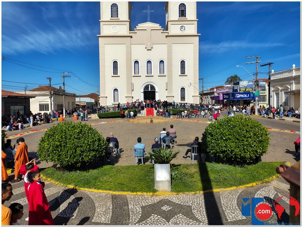 A manhã desta quinta-feira, 19 de junho de 2025, foi marcada por um dos momentos mais significativos do calendário religioso católico: a Procissão de Corpus Christi, realizada em Muzambinho com grande participação da comunidade. Este ano, o evento ganhou um novo trajeto, percorrendo toda a extensão da Avenida Dr. Américo Luz, nos dois sentidos, sobre os tradicionais tapetes decorados por mãos devotas e criativas.