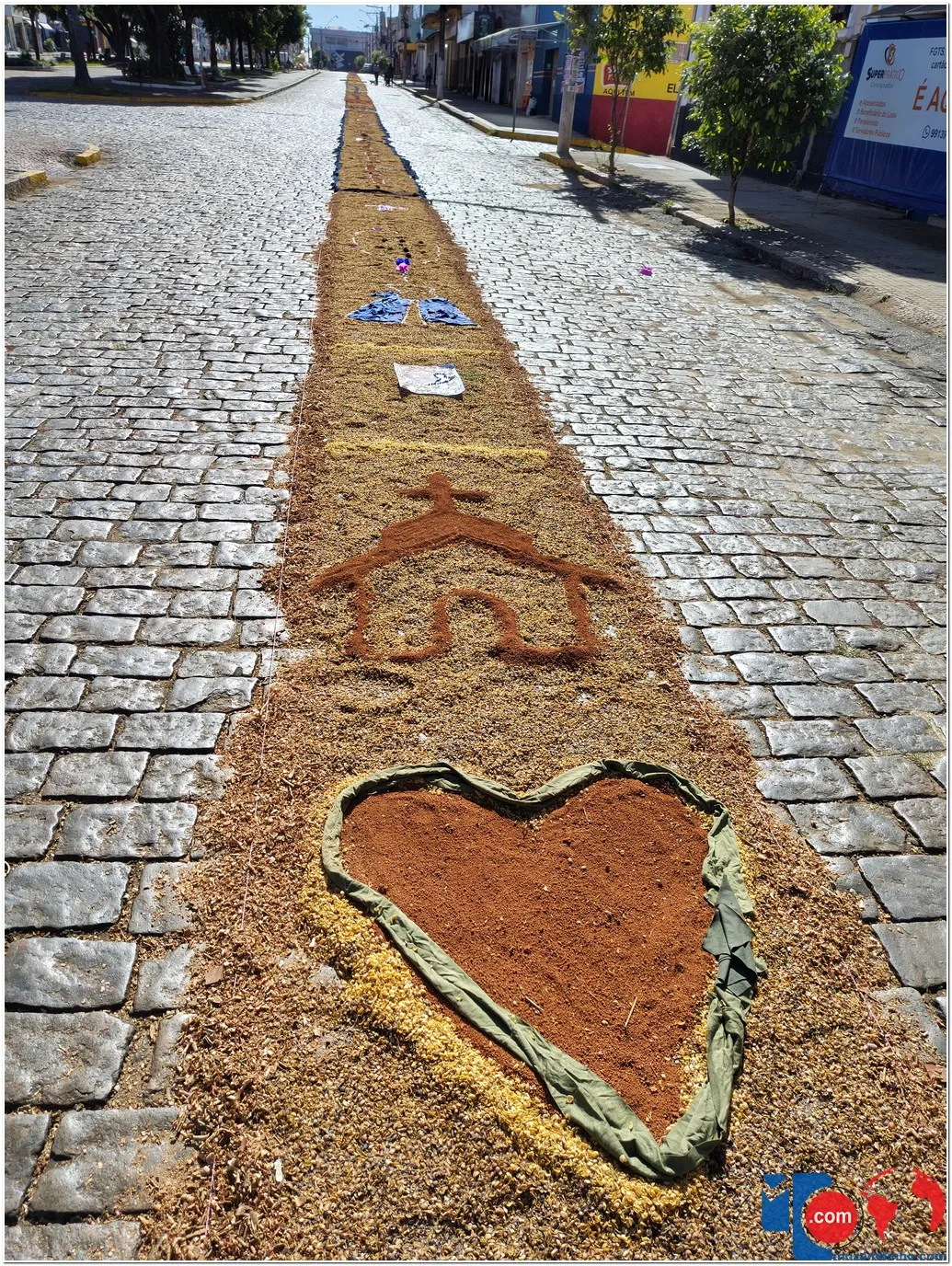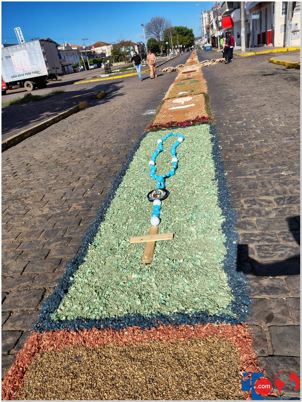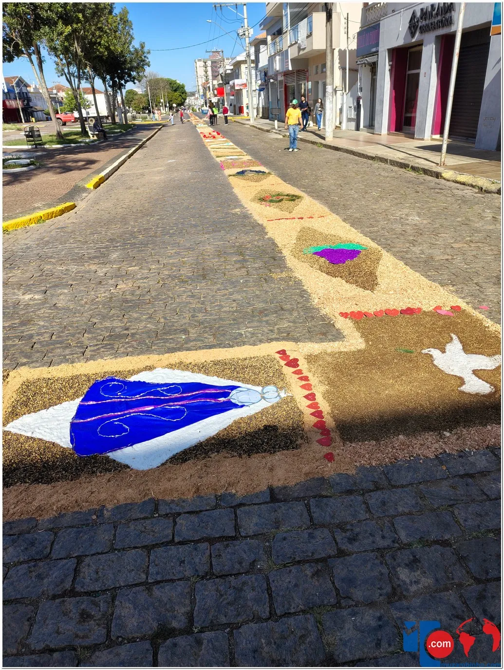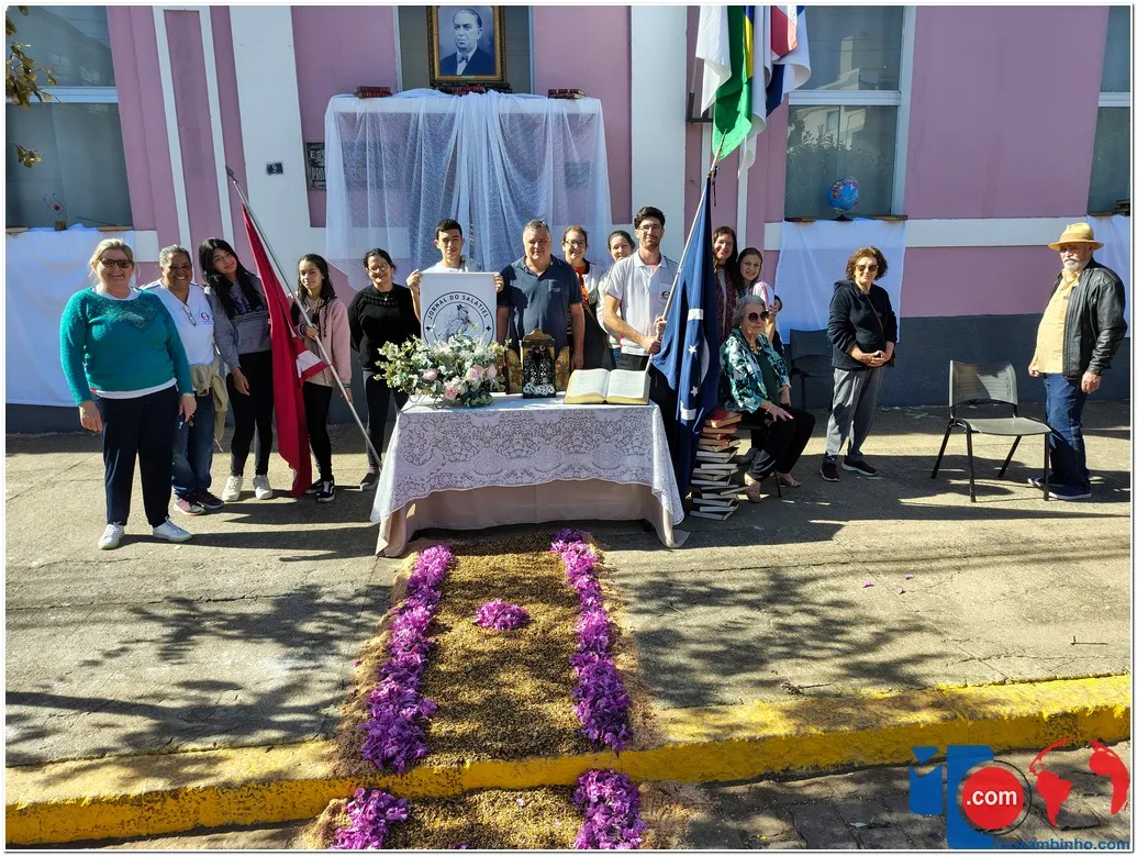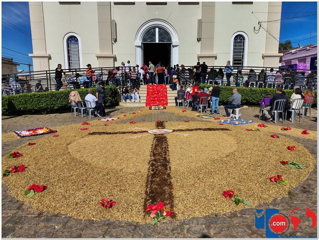 Após a Santa Missa celebrada na Igreja Matriz São José, os fiéis se reuniram para acompanhar a procissão do Santíssimo Sacramento, conduzida pelo sacerdote em meio a orações, cânticos e um clima de profunda espiritualidade. A caminhada foi feita sobre os tapetes confeccionados com serragem colorida, flores, sal, pó de café, folhas, alimentos e outros materiais, formando desenhos que representavam símbolos e passagens da fé cristã.