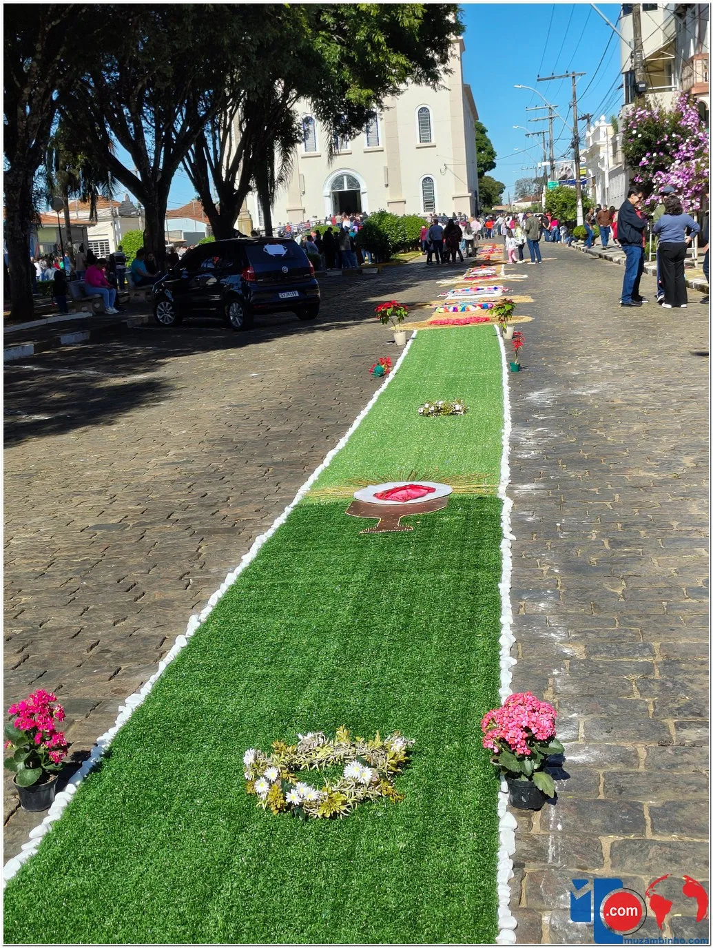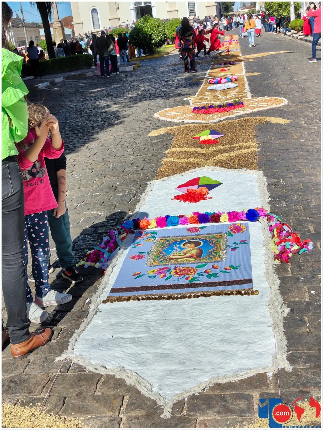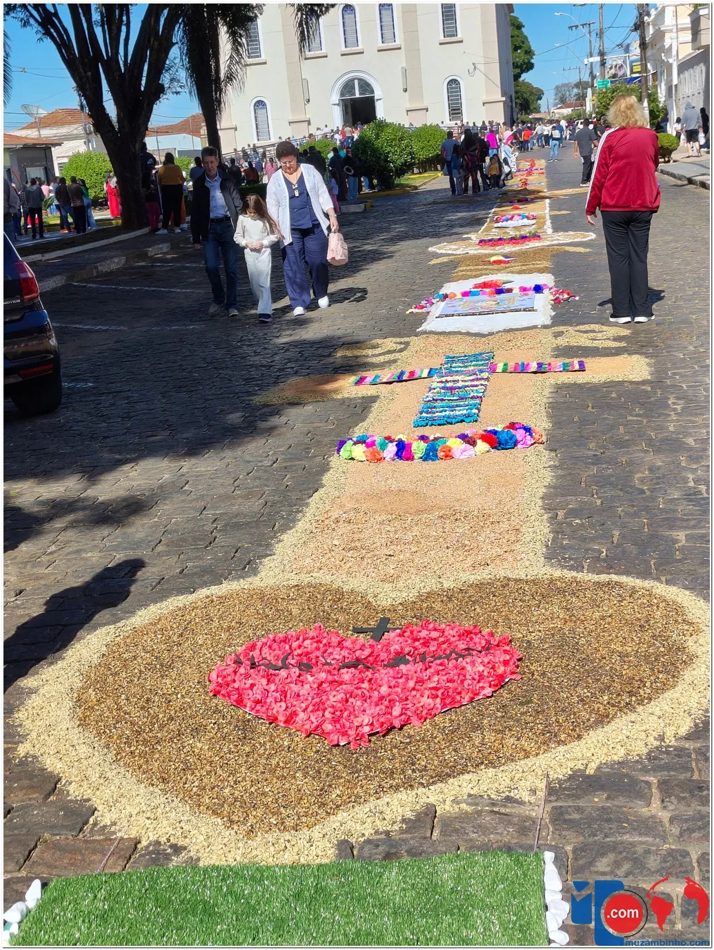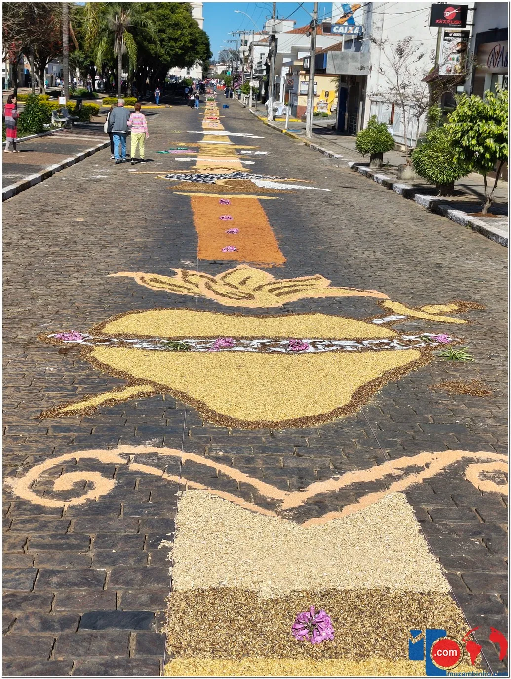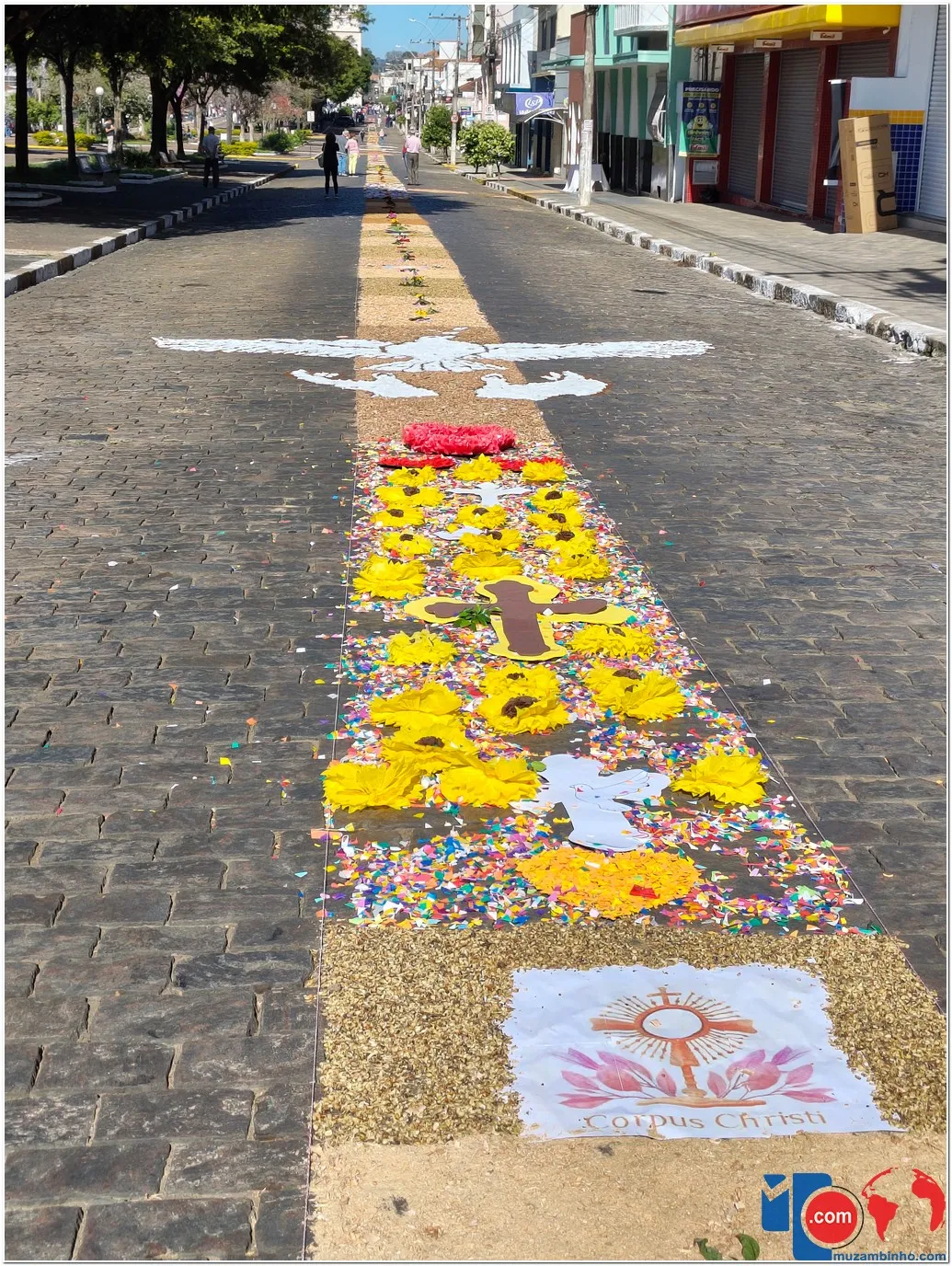 A tradição dos tapetes remonta a práticas populares que unem fé e arte, permitindo que os fiéis expressem sua devoção de maneira concreta e comunitária. Em Muzambinho, essa tradição se mantém viva e forte, reunindo famílias, grupos de jovens, pastorais e movimentos da igreja, que se dedicam desde a madrugada à montagem dos tapetes.