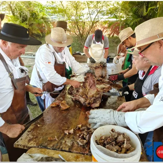 O costelão assado no fogo de chão, preparado com esmero por Nelson Castelli e sua equipe, que iniciaram os trabalhos ainda no sábado para garantir o ponto perfeito da carne. A dedicação dos organizadores e voluntários foi fundamental para o sucesso do evento, que já se firmou no calendário local.