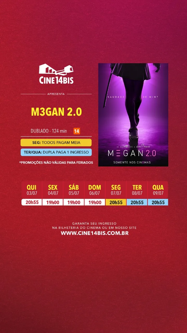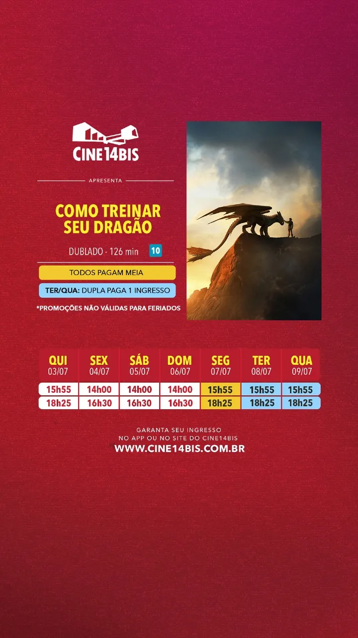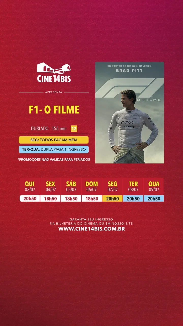 Garanta seus ingressos pelo site ou app do Cine14Bis.
