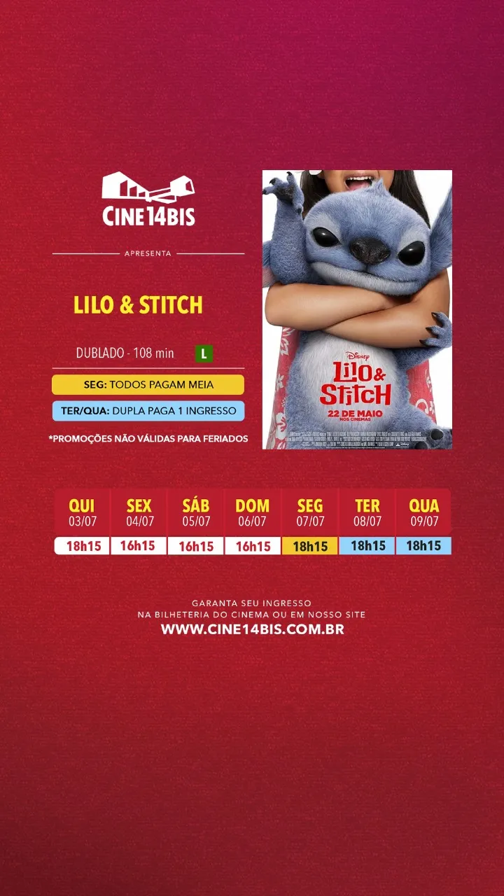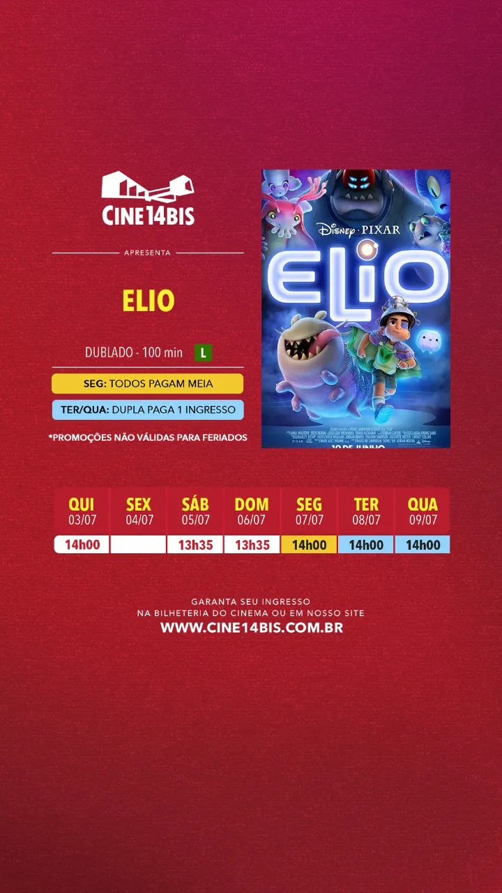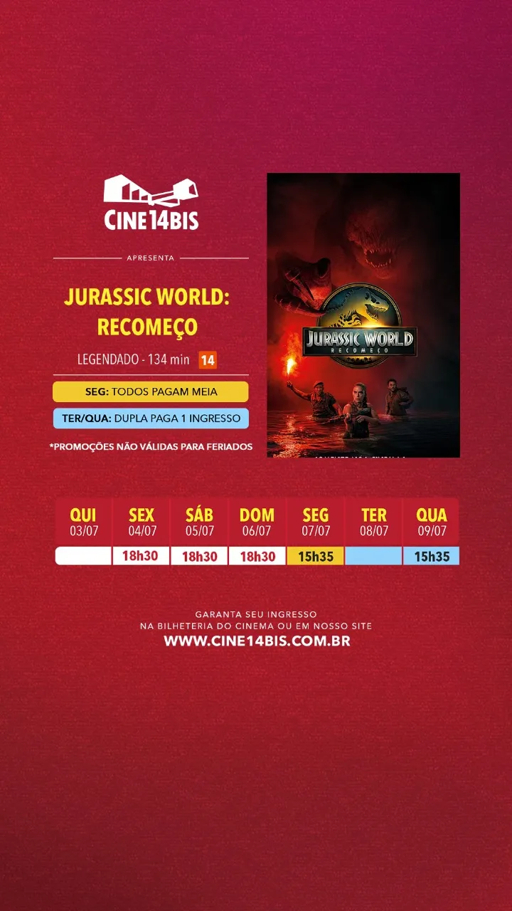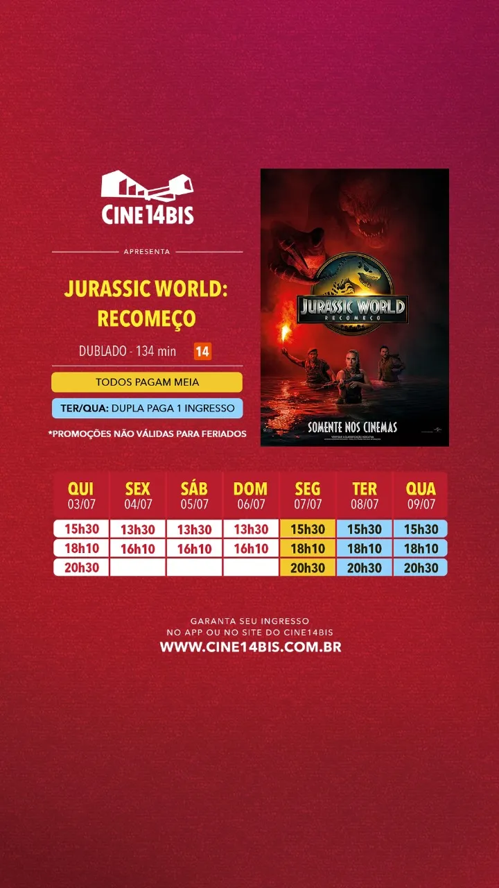 Garanta seus ingressos pelo site ou app do Cine14Bis.