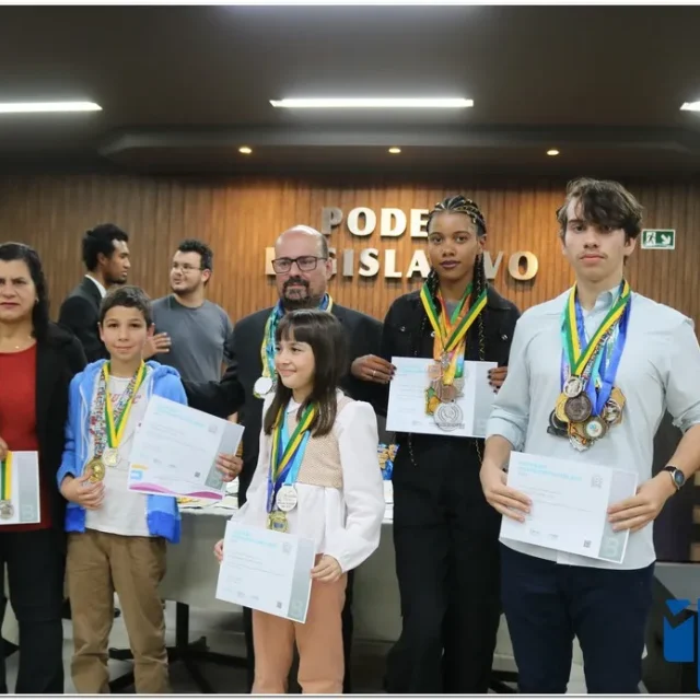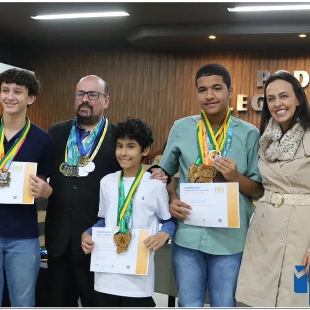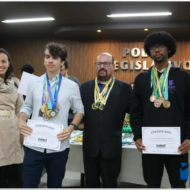 Na noite desta segunda-feira, 7 de julho, o auditório da Câmara Municipal de Muzambinho foi palco de uma emocionante cerimônia de entrega de medalhas e certificados a dezenas de estudantes que se destacaram em diversas olimpíadas científicas ao longo de 2024 e início de 2025. O evento foi organizado pelo PODEMOS – Programa Orientador do Desenvolvimento da Matemática Olímpica e Seriada, com apoio da Secretaria Municipal de Educação, Câmara Municipal, escolas estaduais e municipais de Muzambinho, além do próprio IFSULDEMINAS.