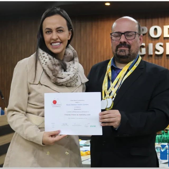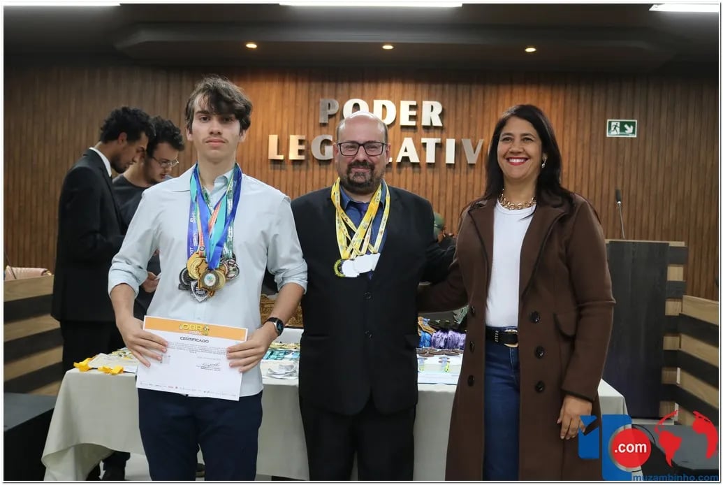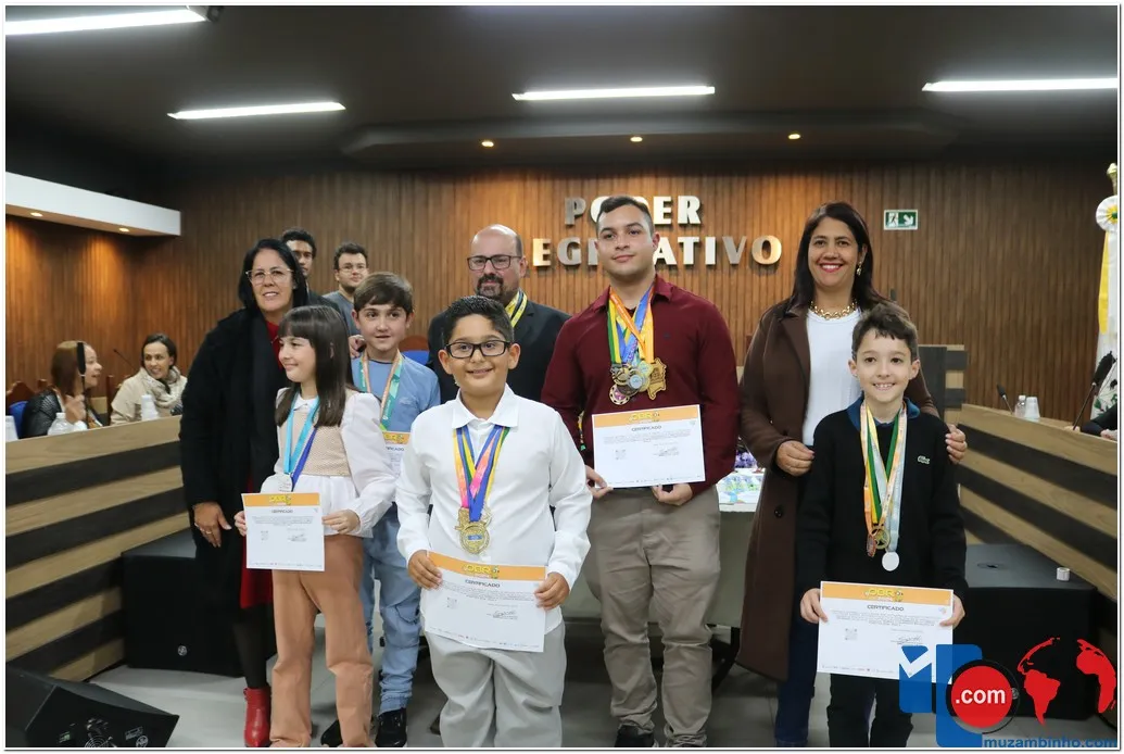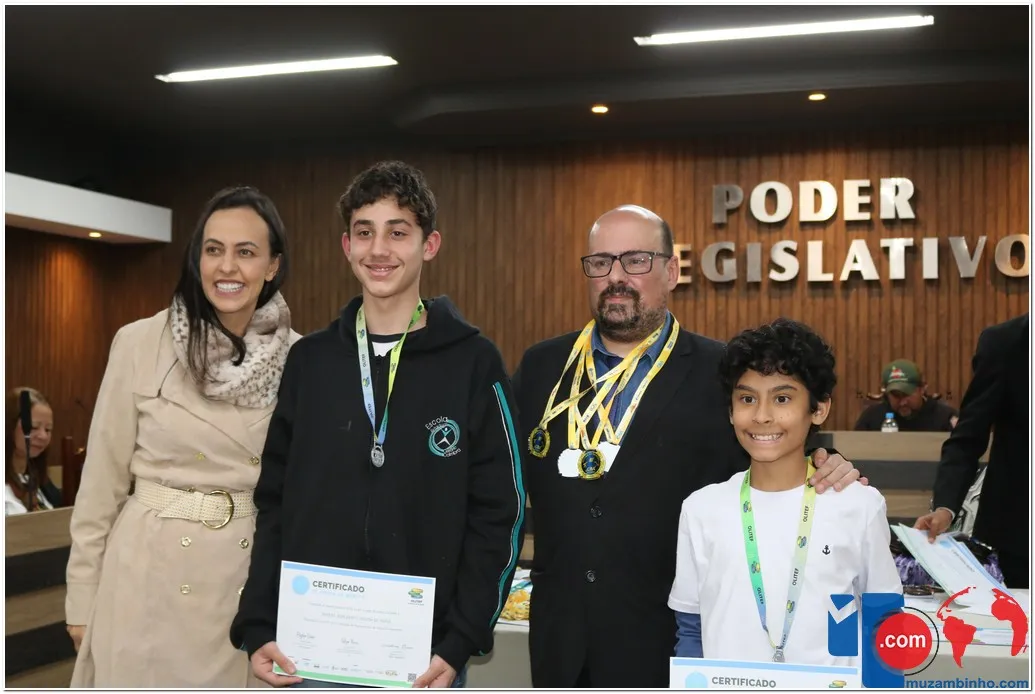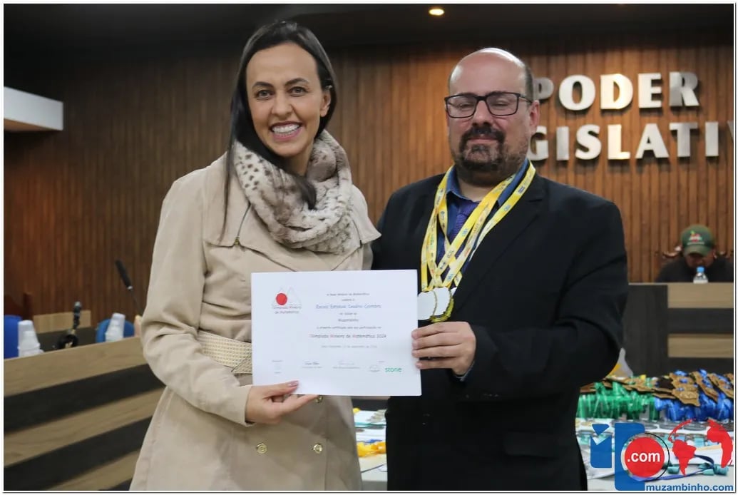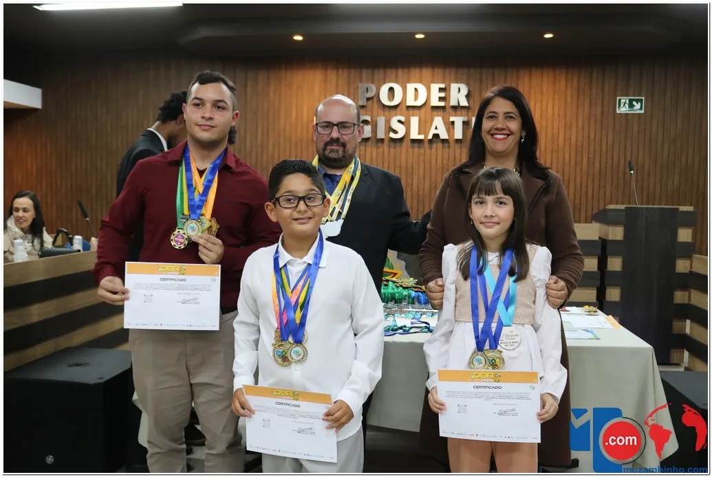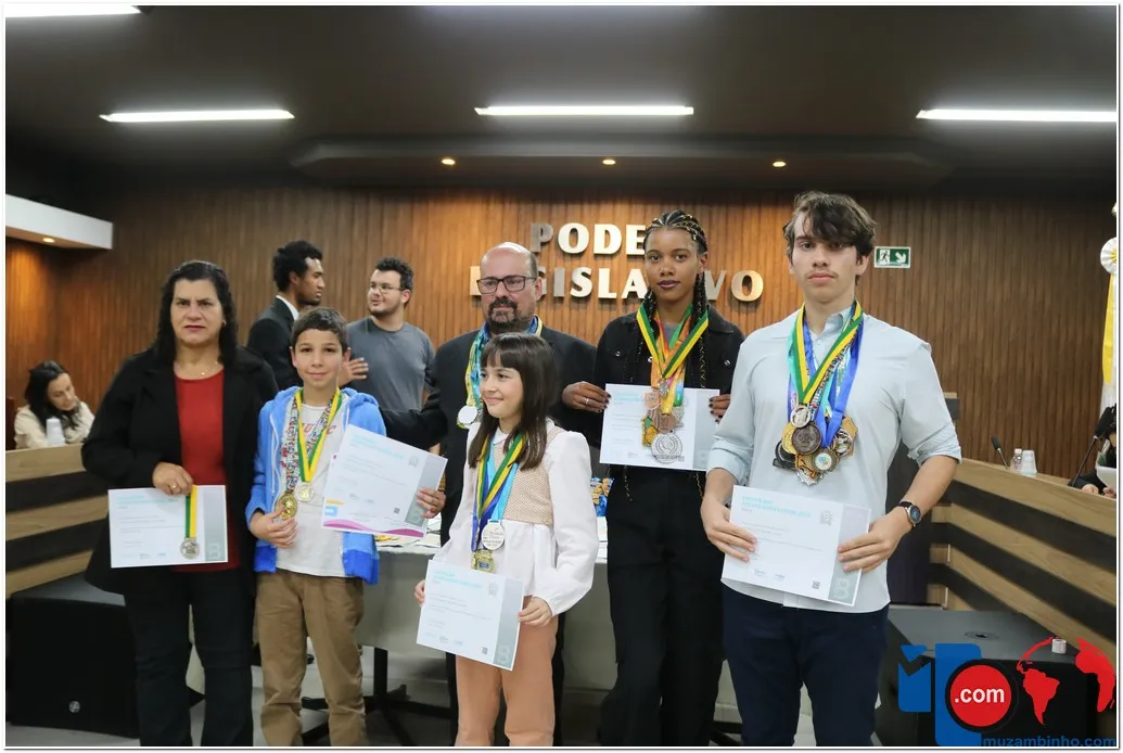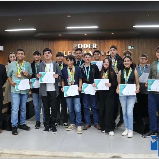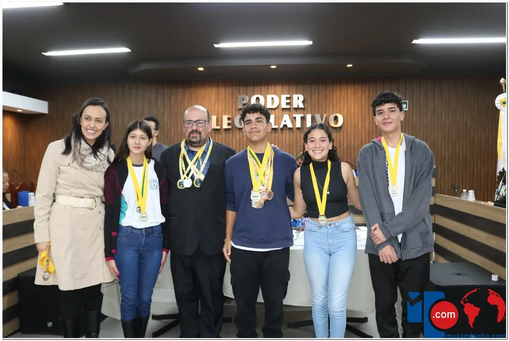 Na noite desta segunda-feira, 7 de julho, o auditório da Câmara Municipal de Muzambinho foi palco de uma emocionante cerimônia de entrega de medalhas e certificados a dezenas de estudantes que se destacaram em diversas olimpíadas científicas ao longo de 2024 e início de 2025. O evento foi organizado pelo PODEMOS – Programa Orientador do Desenvolvimento da Matemática Olímpica e Seriada, com apoio da Secretaria Municipal de Educação, Câmara Municipal, escolas estaduais e municipais de Muzambinho, além do próprio IFSULDEMINAS.