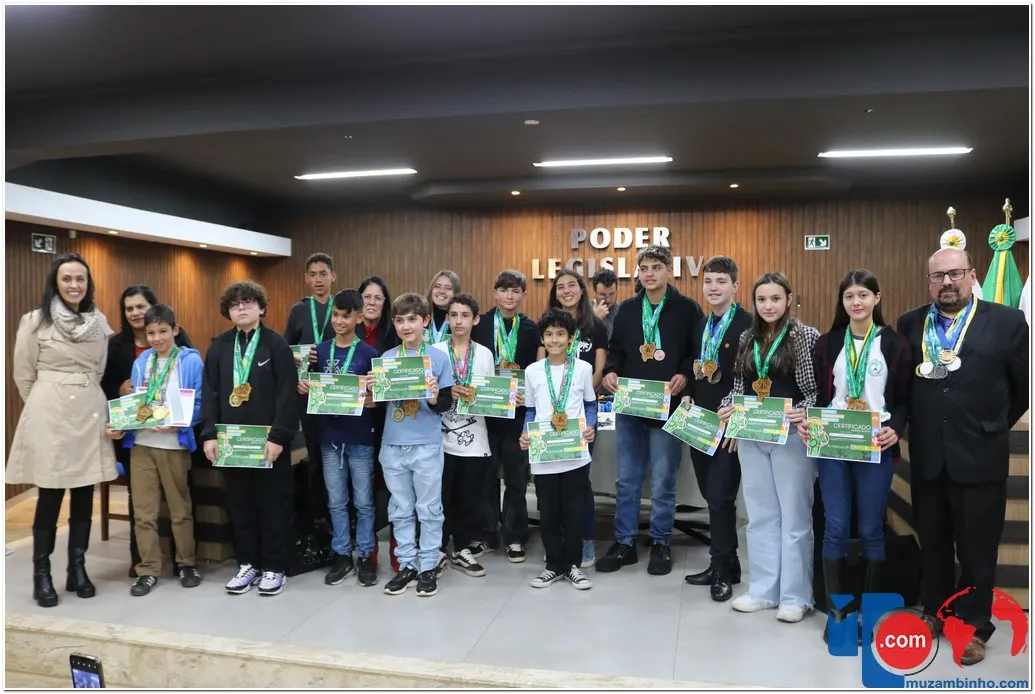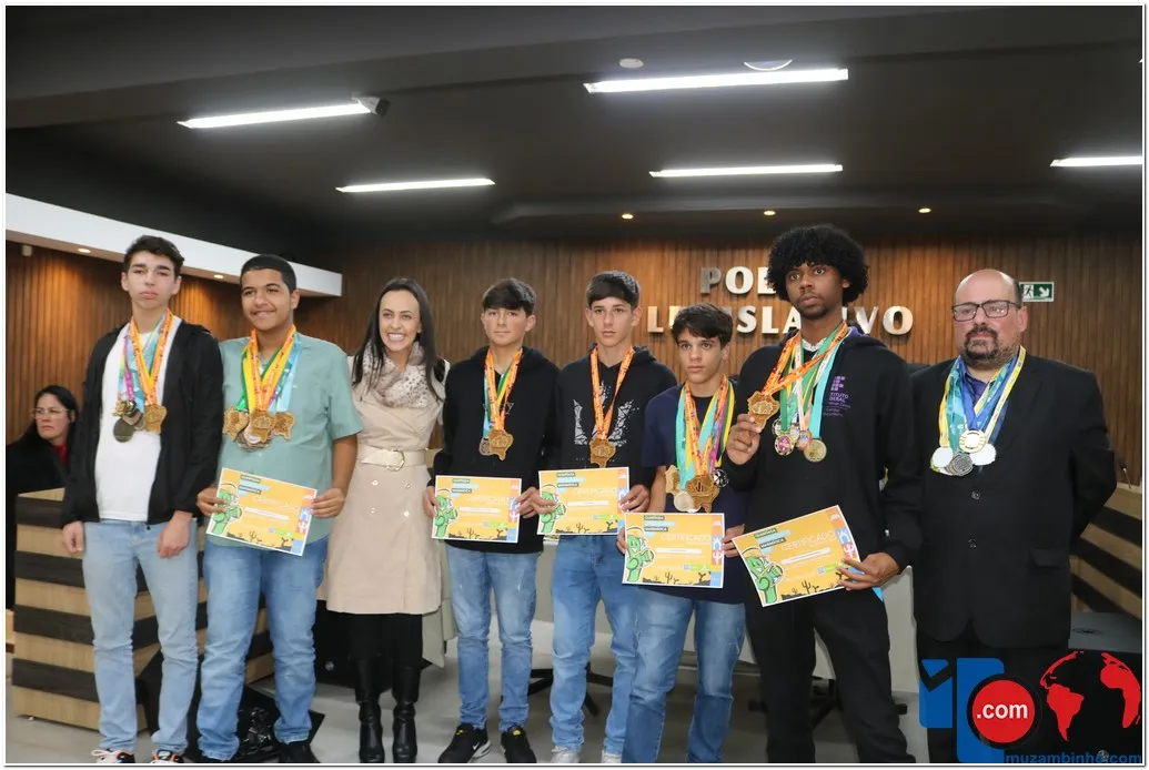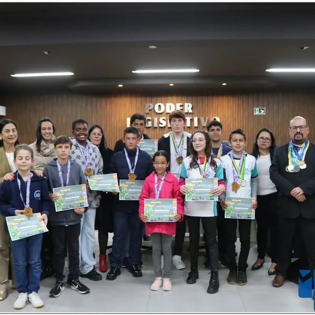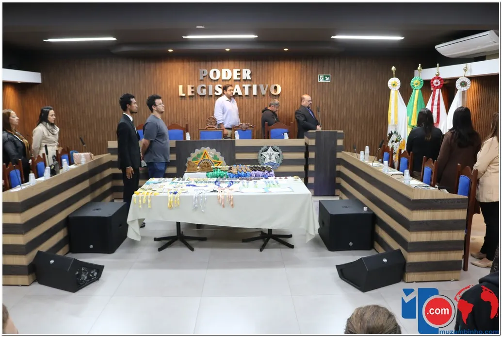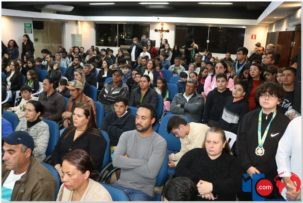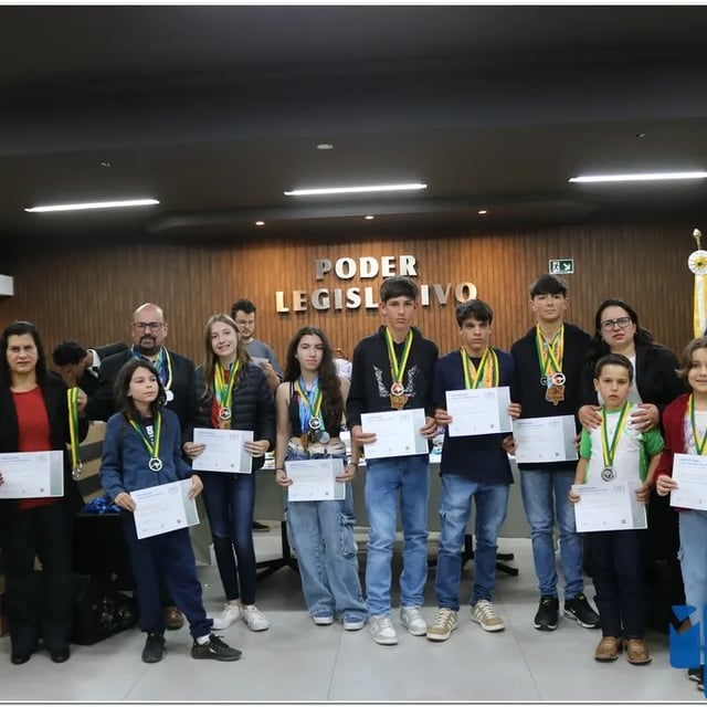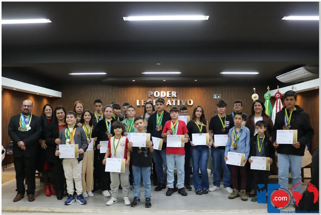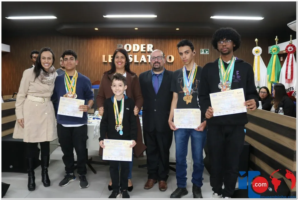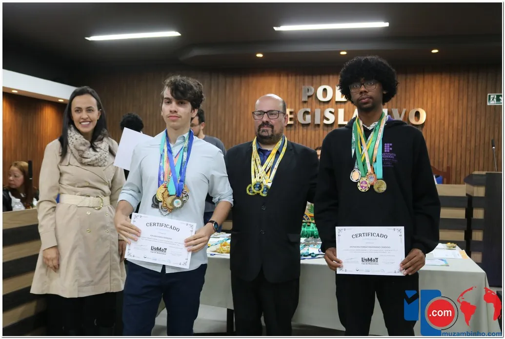 Na noite desta segunda-feira, 7 de julho, o auditório da Câmara Municipal de Muzambinho foi palco de uma emocionante cerimônia de entrega de medalhas e certificados a dezenas de estudantes que se destacaram em diversas olimpíadas científicas ao longo de 2024 e início de 2025. O evento foi organizado pelo PODEMOS – Programa Orientador do Desenvolvimento da Matemática Olímpica e Seriada, com apoio da Secretaria Municipal de Educação, Câmara Municipal, escolas estaduais e municipais de Muzambinho, além do próprio IFSULDEMINAS.