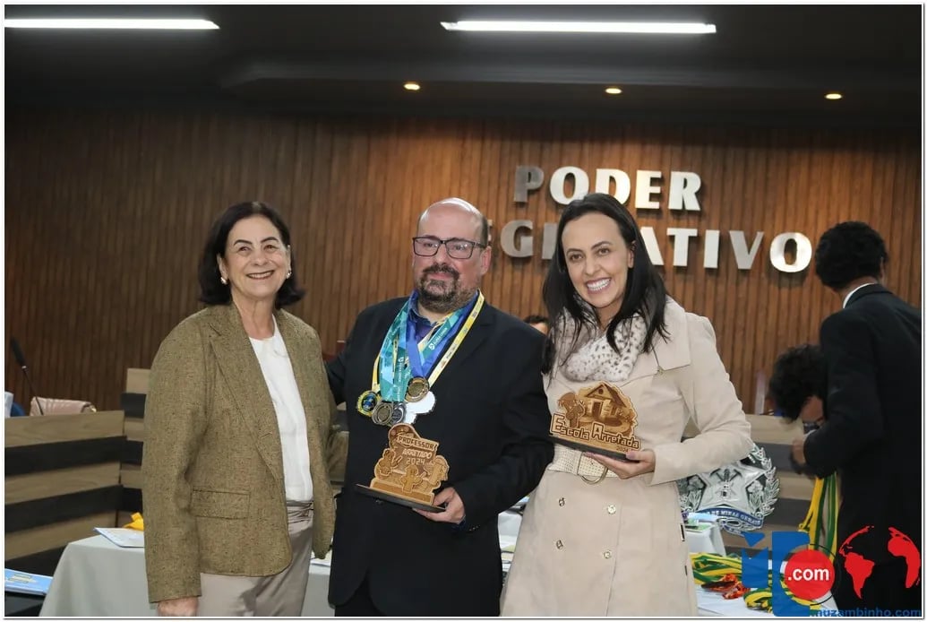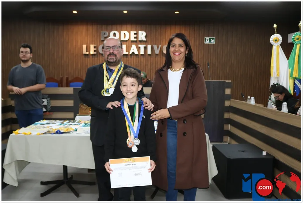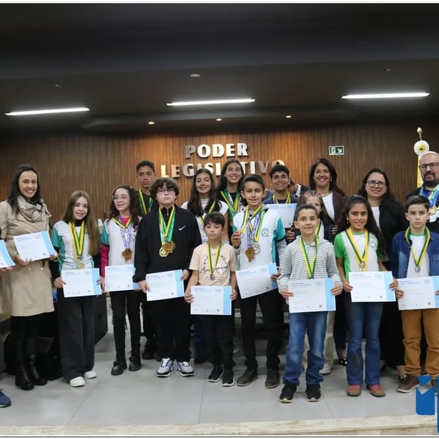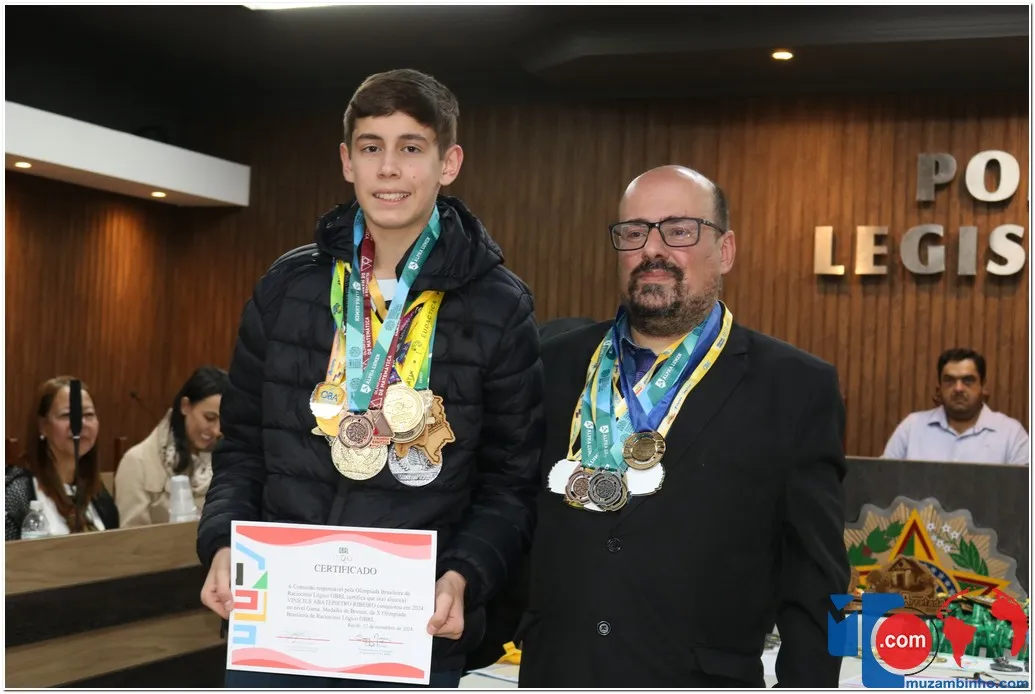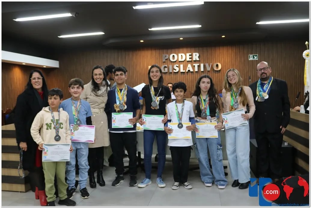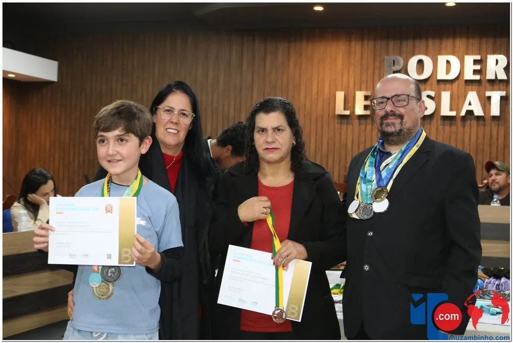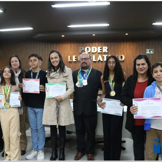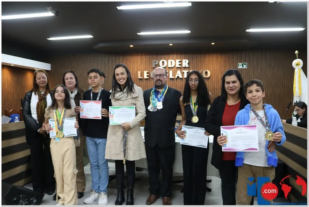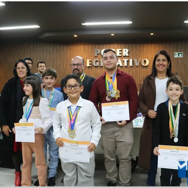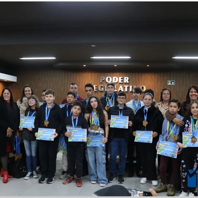 Na noite desta segunda-feira, 7 de julho, o auditório da Câmara Municipal de Muzambinho foi palco de uma emocionante cerimônia de entrega de medalhas e certificados a dezenas de estudantes que se destacaram em diversas olimpíadas científicas ao longo de 2024 e início de 2025. O evento foi organizado pelo PODEMOS – Programa Orientador do Desenvolvimento da Matemática Olímpica e Seriada, com apoio da Secretaria Municipal de Educação, Câmara Municipal, escolas estaduais e municipais de Muzambinho, além do próprio IFSULDEMINAS.