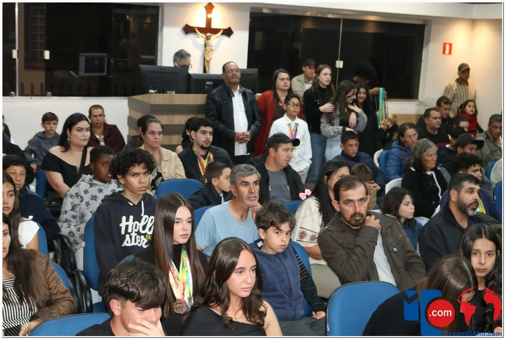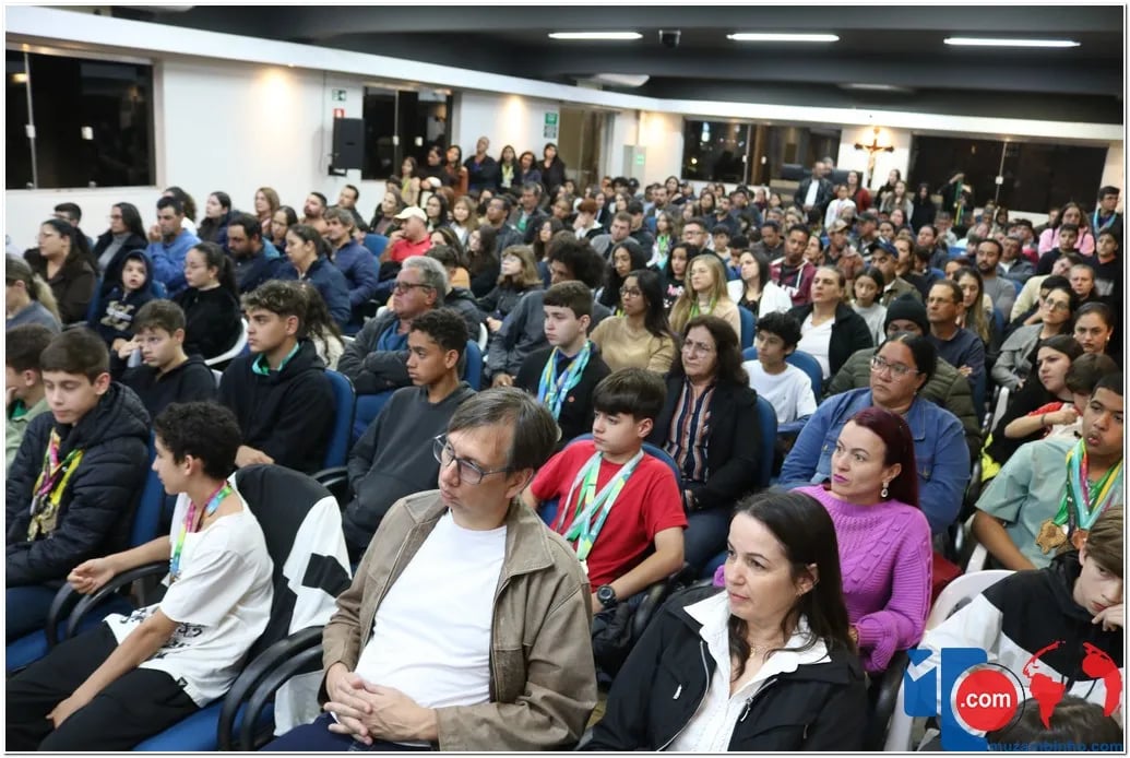 A cerimônia reuniu autoridades locais, professores, diretores, familiares e alunos premiados, celebrando conquistas em competições como OBMEP (Matemática), OBA (Astronomia), OBR (Robótica), OMEF (Educação Financeira), OMM (Matemática Mineira), OLITEF (Tesouro Direto), OIMC (Matemática Internacional), CEM (Robótica Estadual), OBRL (Raciocínio Lógico), Bebras (Pensamento Computacional), Mandacaru de Matemática e Olimpíada Canguru de Matemática.
