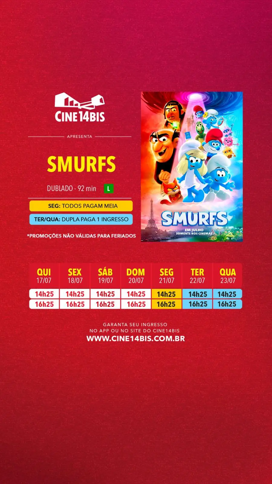 Smurfs: A animação familiar ganha vida na tela grande, acompanhando os pequenos habitantes da Vila dos Smurfs em uma jornada divertida em busca do Papai Smurf.