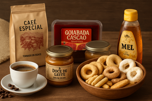 A loja reúne o melhor da produção artesanal de Muzambinho e região: cafés especiais e tradicionais, goiabadas cascão e lisa, doces de leite legítimos de Minas, bolachas caseiras e mel puro direto do apiário. Todos os itens são produzidos com frutas frescas, leite da roça, grãos selecionados e métodos artesanais que mantêm viva a essência da cultura mineira.