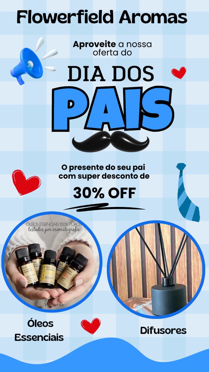 Com descontos de até 30% OFF, a campanha especial oferece kits com óleos essenciais 100% puros, difusores de varetas e difusores elétricos modernos, ideais para deixar qualquer ambiente mais aconchegante e elegante. “Tem pai que é presente… e para cada pai, um aroma!” .