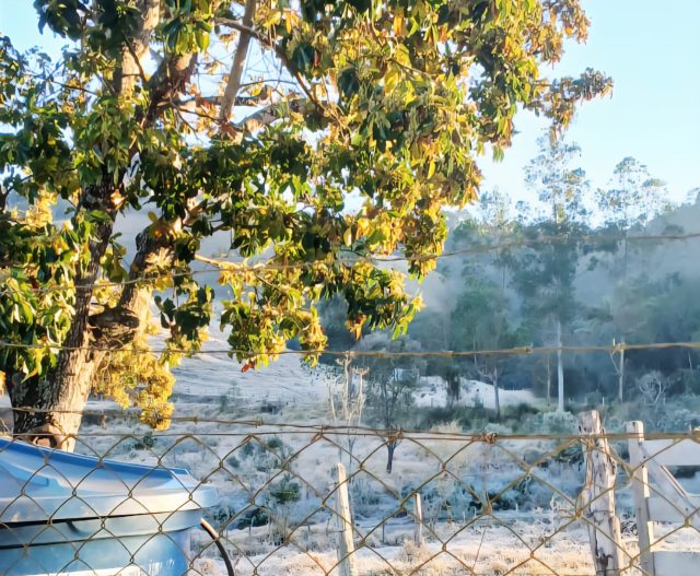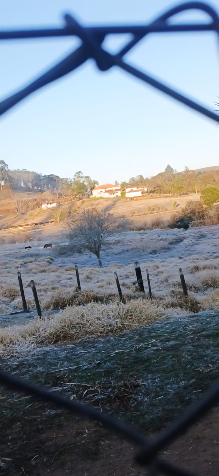 Fotos tiradas mesmo mais tarde, mostram as baixadas cobertas pelo gelo, internauta afirma que foi a noite mais fria e com mais geadas cobrindo as partes mais baixas este ano de 2025.