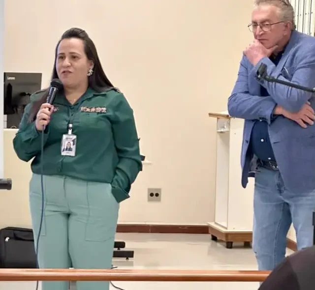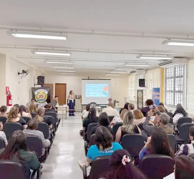 A primeira palestrante do dia foi a psicóloga e analista de Educação Básica do Núcleo de Acolhimento Educacional SRE de São Sebastião do Paraíso, Ívina Reis Magalhães. Em seu pronunciamento ela mencionou a importância da iniciativa do governo do Estado de Minas Gerais de nomear assistentes sociais e psicólogos para atuarem nas escolas visando uma melhor orientação da direção das instituições de ensino, com a consequente melhoria no ambiente escolar e na convivência entre alunos, professores e direção, com acolhimento humanizado dos alunos com algum tipo de transtorno mental.