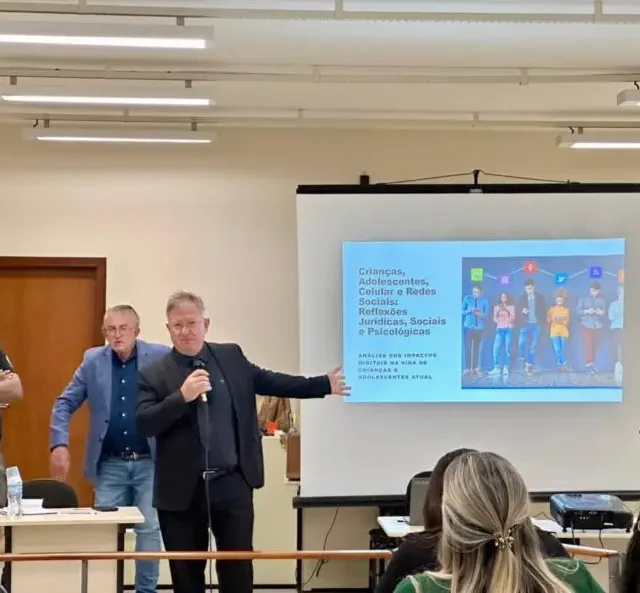 O juiz titular da Comarca de Muzambinho, Dr. Flávio Umberto Schimdt falou a respeito da importância de se fortalecer os núcleos familiares, retirando as mídias sociais do alcance das crianças e da preocupação que os pais devem ter na diferenciação das redes sociais usadas pelos filhos nas várias idades.