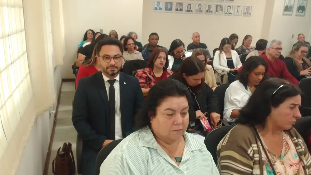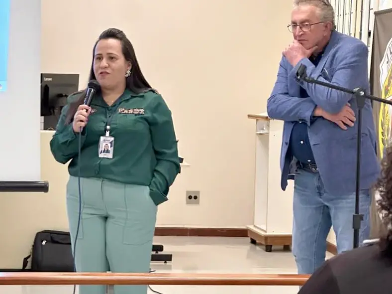 A primeira palestrante do dia foi a psicóloga e analista de Educação Básica do Núcleo de Acolhimento Educacional SRE de São Sebastião do Paraíso, Ívina Reis Magalhães. Em seu pronunciamento ela mencionou a importância da iniciativa do governo do Estado de Minas Gerais de nomear assistentes sociais e psicólogos para atuarem nas escolas visando uma melhor orientação da direção das instituições de ensino, com a consequente melhoria no ambiente escolar e na convivência entre alunos, professores e direção, com acolhimento humanizado dos alunos com algum tipo de transtorno mental.