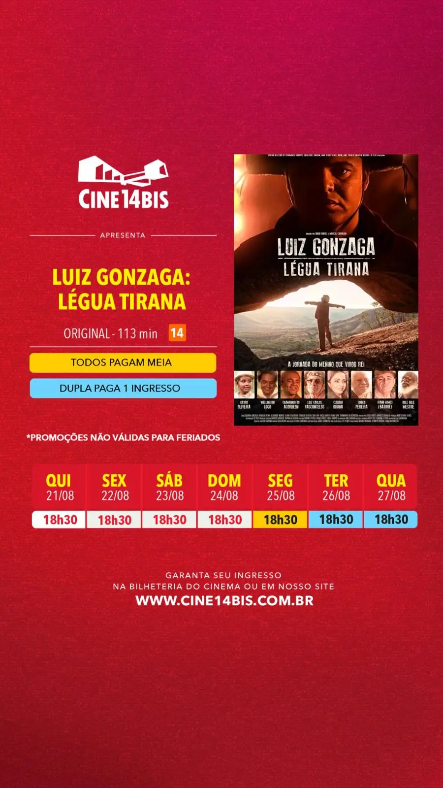 Cine14Bis: Confira a Programação Semanal