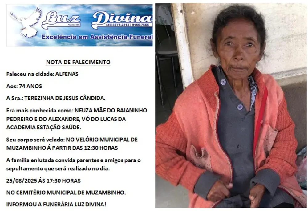 Mais Artigos DestaqueObituário Faleceu aos 77 anos a Sra. Marina de Jesus Silva AniversáriosDestaqueNossa CidadeParceiros Ingrid e Marcelo Rosa celebram aniversários com almoço especial em Muzambinho BelezaDestaqueNossa CidadeParceiros Zahra Cosméticos e Studio Nayara Moraes chega ao Centro de Muzambinho com novidades em beleza e bem-estarDestaqueObituárioFaleceu aos 74 anos a Sra. Terezinha de Jesus Cândida Redação25 de agosto de 20251min0Informou a Funerária Luz DivinaA família enlutada, nossos sinceros sentimentos de pesares, que Deus os abençoe e conforte. Post Views: 205EnterroFuneráriaLuz DivinamorteobituárioSepultamentoVelório