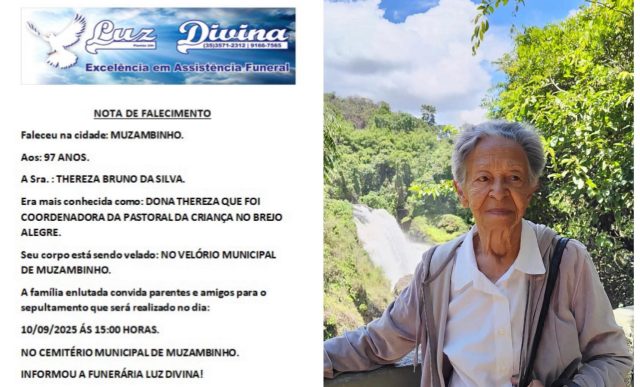 Mais Artigos AgronegócioDestaque Café em Foco, 31/03/26, Cotações e Informações da Cafeicultura DestaqueEconomia Imposto de Renda 2026: é melhor fazer a declaração completa ou simplificada? DestaqueEsportesNossa Cidade Fim de semana eletrizante define finalistas do Campeonato Municipal em MuzambinhoDestaqueObituárioFaleceu aos 97 anos a Sra. Thereza Bruno da Silva Redação10 de setembro de 20251min0Informou a Funerária Luz DivinaA família enlutada, nossos sinceros sentimentos de pesares, que Deus os abençoe e conforte. Post Views: 1.108EnterroFuneráriaLuz DivinamorteobituárioSepultamentoVelório