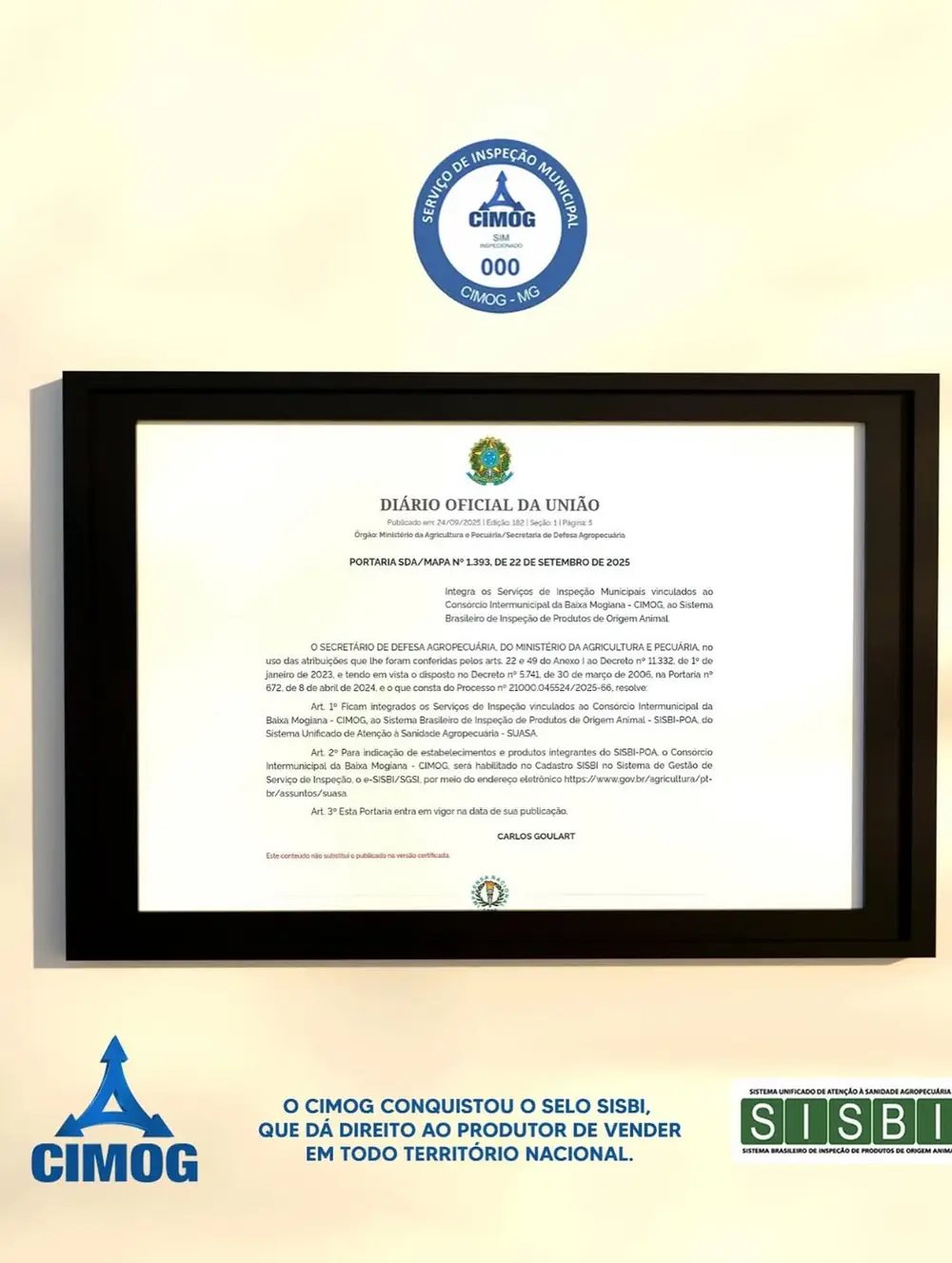 Nesta quarta-feira (24), o Consórcio Intermunicipal da Baixa Mogiana (CIMOG) e a Associação dos Municípios da Microrregião da Baixa Mogiana (AMOG) viveram um marco histórico: o Serviço de Inspeção Municipal (SIM CIMOG) recebeu oficialmente a equivalência ao Sistema Brasileiro de Inspeção de Produtos de Origem Animal (SISBI-POA).