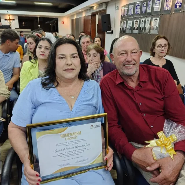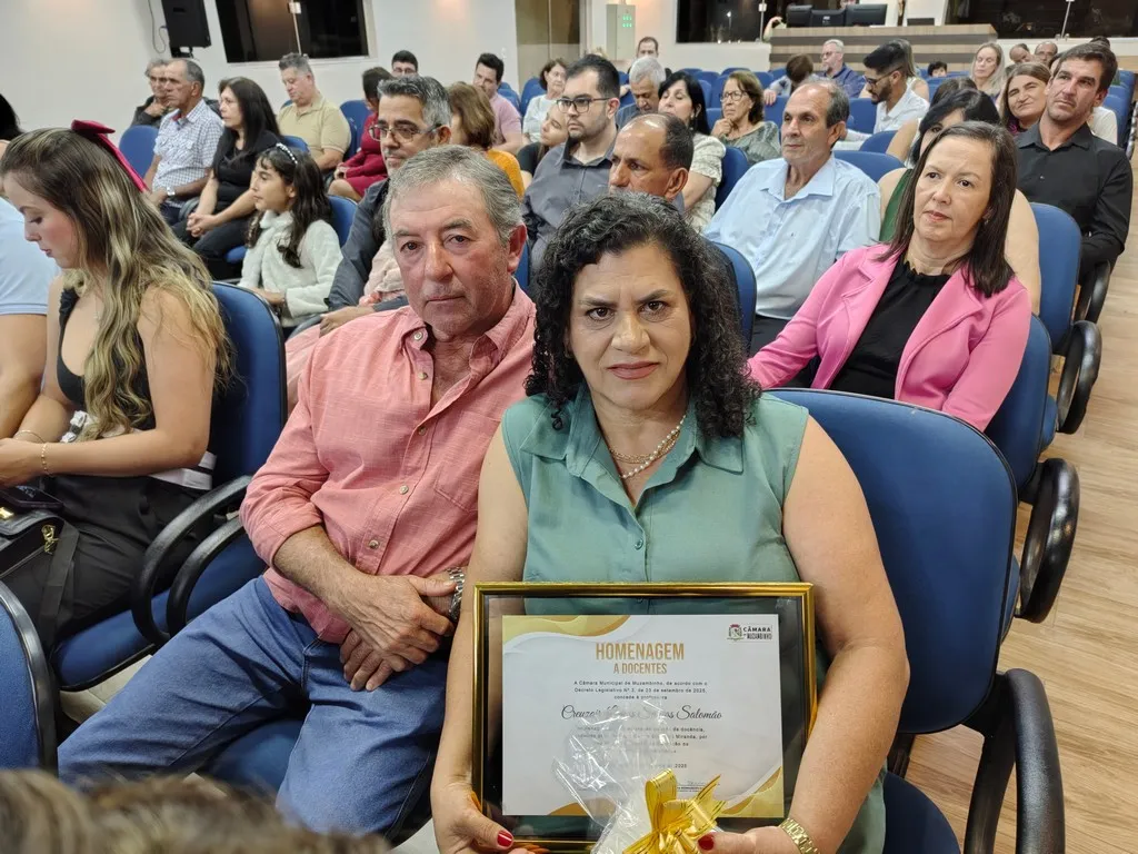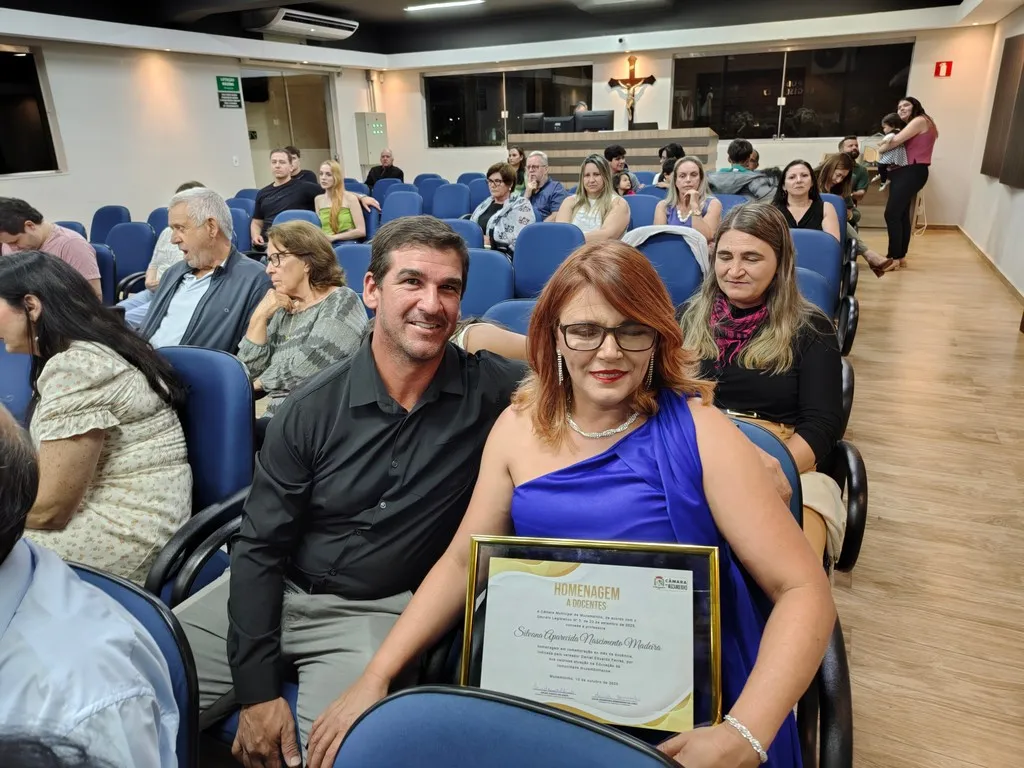 Em uma noite marcada por emoção e reconhecimento, a Câmara Municipal de Muzambinho realizou, nesta sexta-feira, 10/10, uma cerimônia especial em homenagem aos professores, celebrando o Mês da Docência. O evento, instituído pelo Decreto Legislativo, teve como propósito valorizar os educadores que, com dedicação e compromisso, transformam vidas e constroem o futuro por meio da educação.