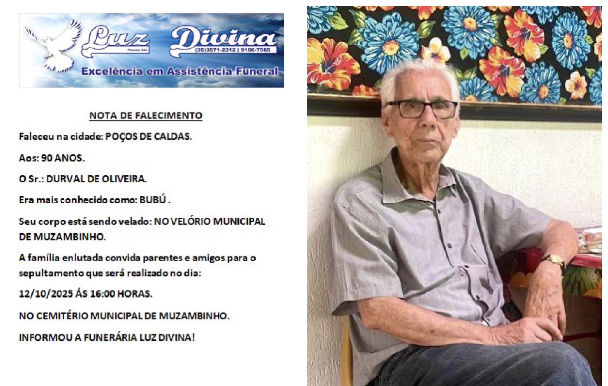 Mais Artigos DestaqueNossa Cidade Repercussão positiva após Prefeito de Muzambinho determinar paralisação de obras da Copasa por má qualidade do serviço DestaqueObituário Faleceu aos 64 anos o Sr. Juvenil Teodoro da Silva Cozinha e CulináriaDestaqueNossa CidadeParceiros Bisnagas de requeijão Musa: ideais para padarias, lanchonetes e pizzarias. DestaqueObituárioFaleceu aos 90 anos o Sr. Durval de Oliveira Redação12 de outubro de 20251min0Informou a Funerária Luz Divina A família enlutada, nossos sinceros sentimentos de pesares, que Deus os abençoe e conforte. Post Views: 118 EnterroFuneráriaLuz DivinamorteobituárioSepultamentoVelório