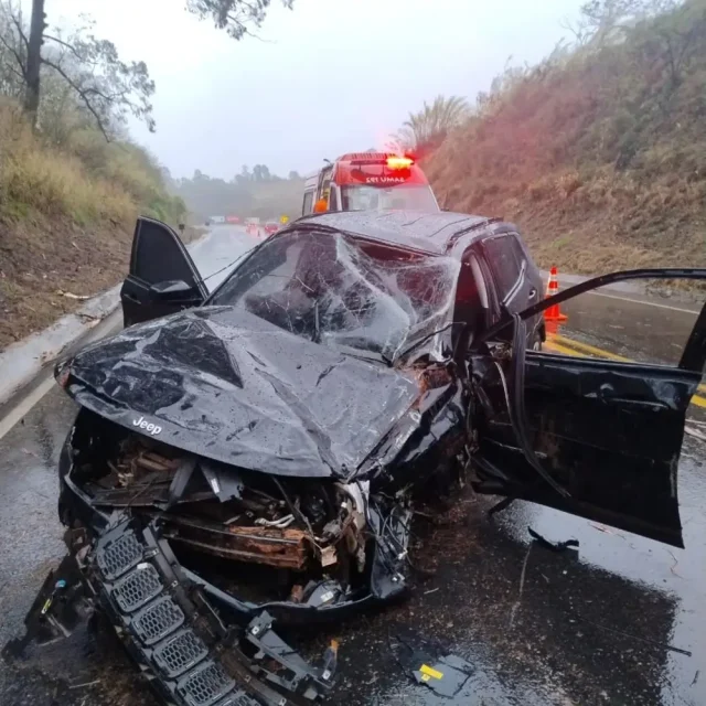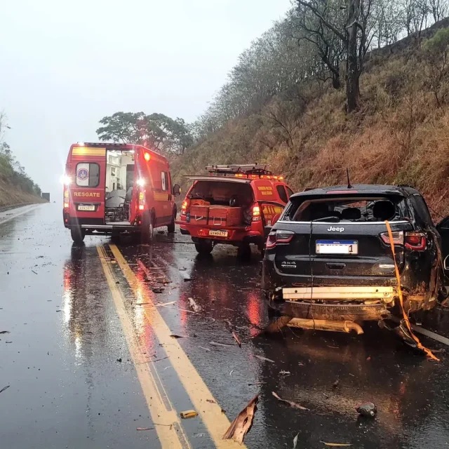 Três pessoas ficaram feridas em um acidente ocorrido no final da tarde de sábado (18) na BR-491, entre Muzambinho e Guaxupé. A colisão envolveu um Jeep Renegade e uma Toyota Hilux, em um trecho da rodovia que estava sob forte chuva no momento do ocorrido.