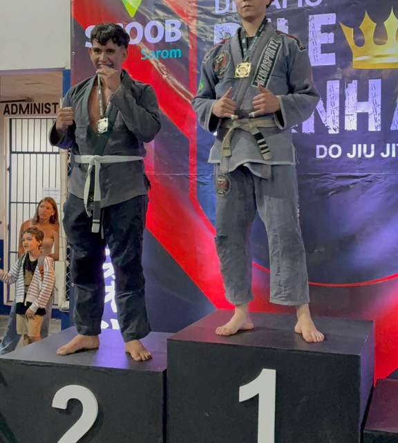 O atleta Carlos Vinícius Françoso de Campos, de Muzambinho, brilhou no campeonato “Rei e Rainha do Jiu-jitsu”, realizado no último sábado (18 de outubro de 2025) na cidade de Passos (MG). Representando o município com garra e técnica, Carlos é treinado pelo mestre Marcos Silva (Baixinho), que ministra aulas no projeto social do CRAS e também na Praça de Esportes.