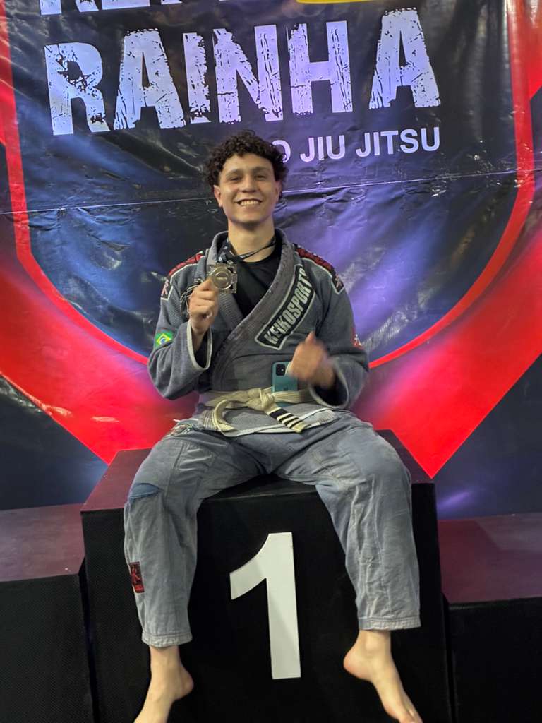 O atleta Carlos Vinícius Françoso de Campos, de Muzambinho, brilhou no campeonato “Rei e Rainha do Jiu-jitsu”, realizado no último sábado (18 de outubro de 2025) na cidade de Passos (MG). Representando o município com garra e técnica, Carlos é treinado pelo mestre Marcos Silva (Baixinho), que ministra aulas no projeto social do CRAS e também na Praça de Esportes.