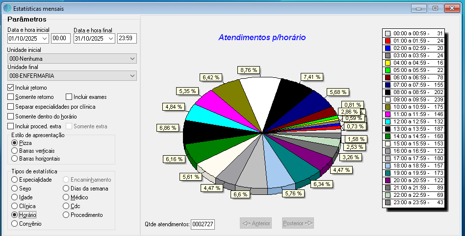 Os horários de maior procura foram entre 18h e 18h59, com 186 atendimentos, e entre 20h e 20h59, com 179 registros. O levantamento mostra que o período da noite continua sendo o mais movimentado no pronto-socorro da Santa Casa.