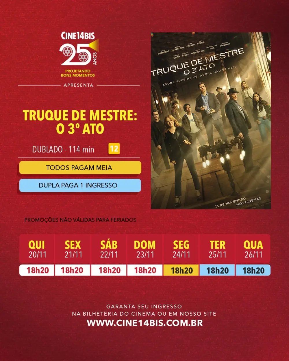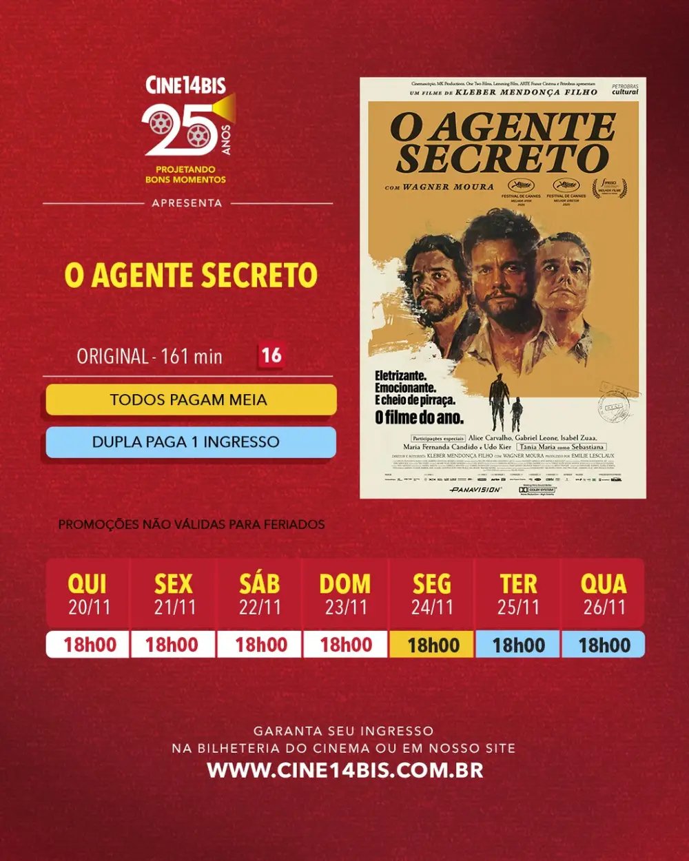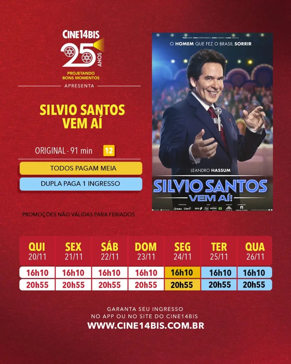 Como parte das novidades da cine-semana, o cinema também apresenta as estreias de “Silvio Santos Vem Aí” e “O Sobrevivente”, ampliando as opções para diferentes perfis de público ao longo dos próximos dias.