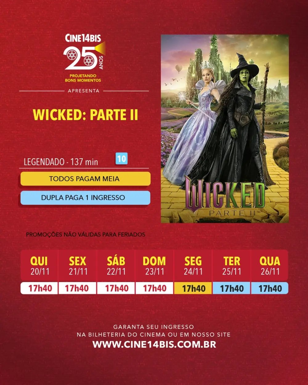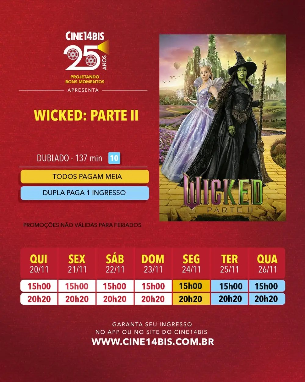 “Wicked – Parte 2” encerra a saga e estreia nesta quinta (20) no Cine14Bis