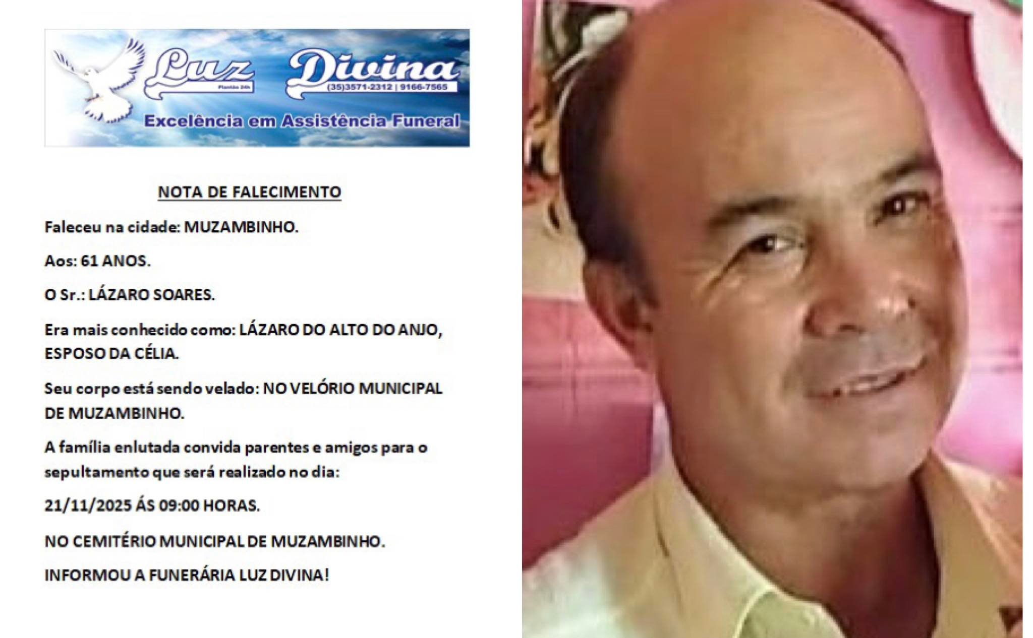 Mais Artigos DestaqueEmpreendedorismoNossa CidadeParceiros Sicredi Muzambinho promove encontro “Empreender com Inteligência” e reúne empresários para debate sobre finanças e tributos DestaqueEventos e FestasNossa Cidade “Noite Solar” celebra a arte e a música de Muzambinho em evento especial ao ar livre DestaqueEducaçãoNossa CidadeParceiros Colégio Lyceu realiza Noite de Autógrafos do Projeto SuperAutor em Muzambinho DestaqueObituárioFaleceu aos 61 anos o Sr. Lázaro Soares Redação20 de novembro de 20251min0Informou a Funerária Luz Divina A família enlutada, nossos sinceros sentimentos de pesares, que Deus os abençoe e conforte. Post Views: 3 EnterroFuneráriaLuz DivinamorteobituárioSepultamentoVelório