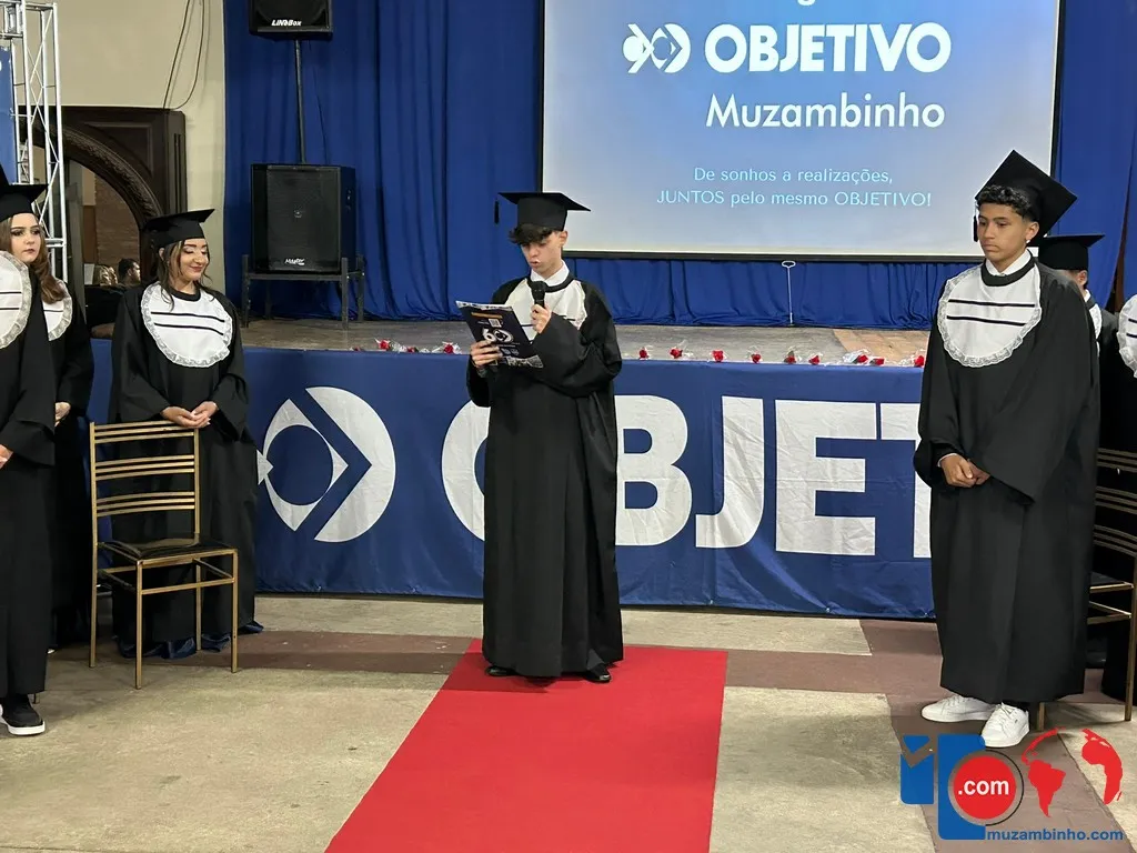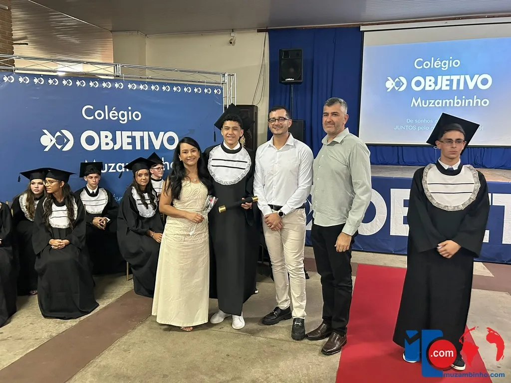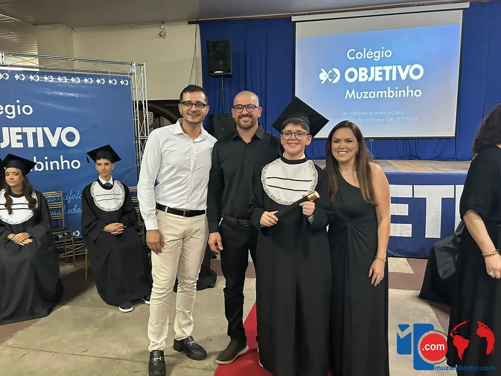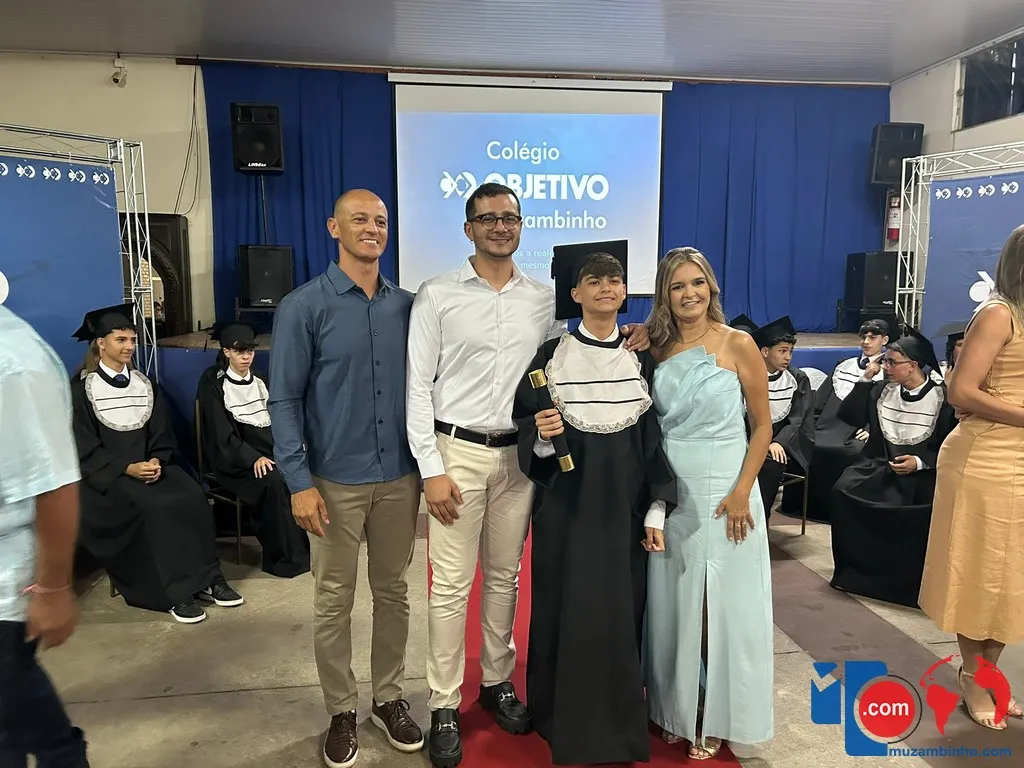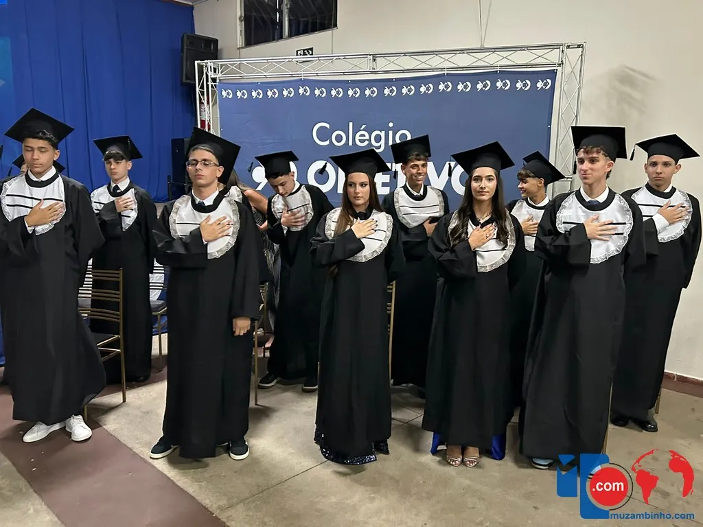 O Colégio Objetivo de Muzambinho realizou, na noite da última sexta-feira, 5 de dezembro de 2025, a formatura da turma do 9º ano do Ensino Fundamental, em uma cerimônia emocionante que celebrou o encerramento de um ciclo e o início de novos caminhos. O evento reuniu alunos, familiares, professores e direção escolar para marcar mais um capítulo importante na trajetória acadêmica dos formandos.