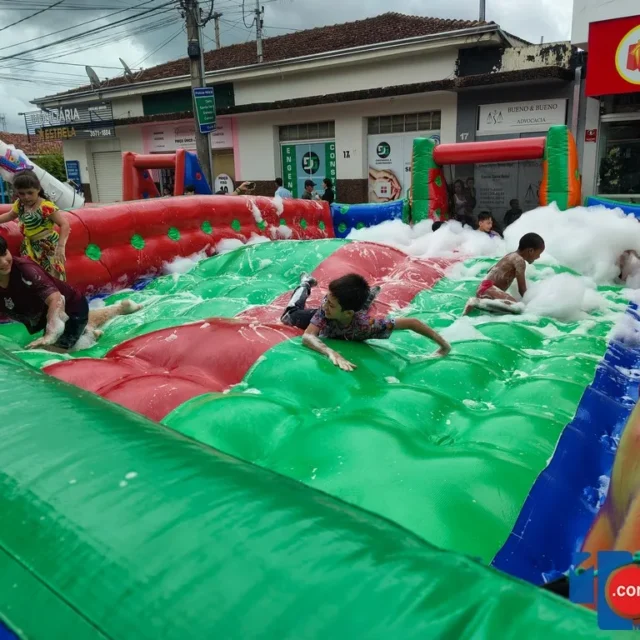 Mesmo com a chuva, o clima foi de muita animação. Brinquedos infláveis, pula-pula e uma variedade de guloseimas, como pipoca, sorvetes e cachorro-quente, garantiram a alegria da criançada, enquanto famílias inteiras participaram do evento em um ambiente de confraternização e espírito natalino.