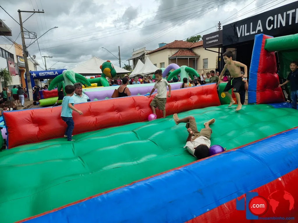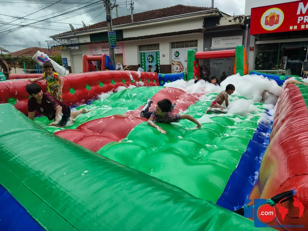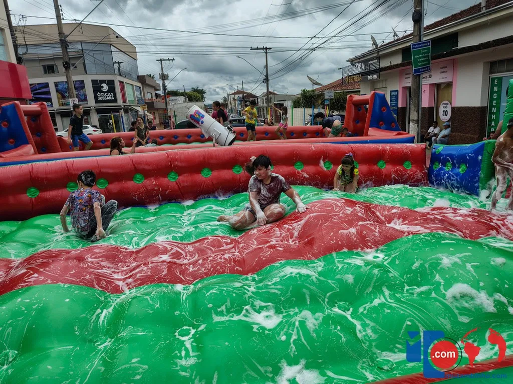 Mesmo com a chuva, o clima foi de muita animação. Brinquedos infláveis, pula-pula e uma variedade de guloseimas, como pipoca, sorvetes e cachorro-quente, garantiram a alegria da criançada, enquanto famílias inteiras participaram do evento em um ambiente de confraternização e espírito natalino.