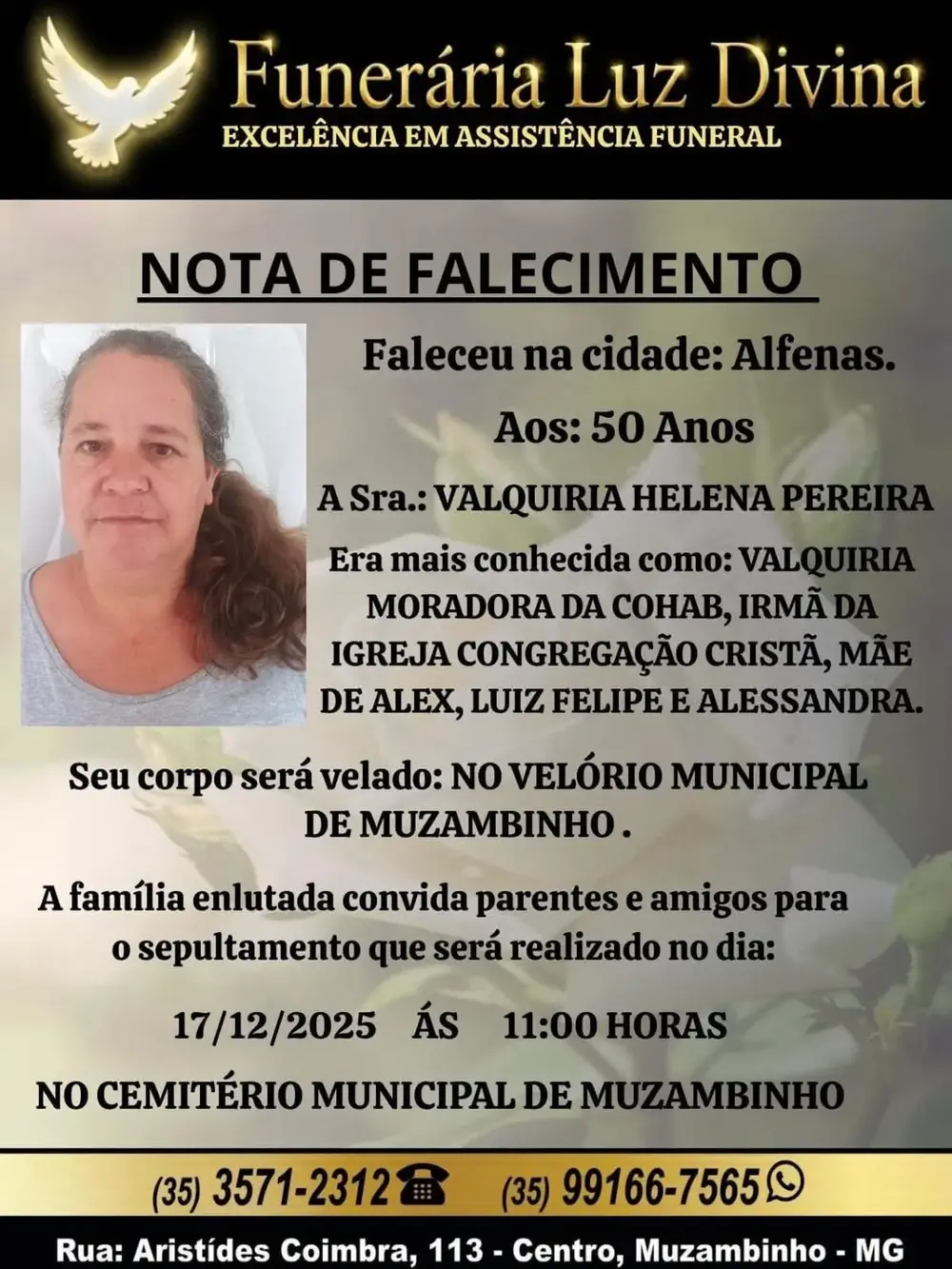Mais Artigos DestaqueDiversosNossa Cidade Correios divulgam esquema especial de funcionamento no fim de ano CulturaDestaqueEventos e FestasNossa Cidade Último Sarau Pôr do Som de 2025 acontece nesta quinta-feira, 18/12 DestaqueObituário Faleceu aos 67 anos o Sr. José Pedro de MeloDestaqueObituárioFaleceu aos 50 anos a Sra. Valquiria Helena Pereira Redação17 de dezembro de 20251min0Informou a Funerária Luz DivinaA família enlutada, nossos sinceros sentimentos de pesares, que Deus os abençoe e conforte. Post Views: 46EnterroFuneráriaLuz DivinamorteobituárioSepultamentoVelório