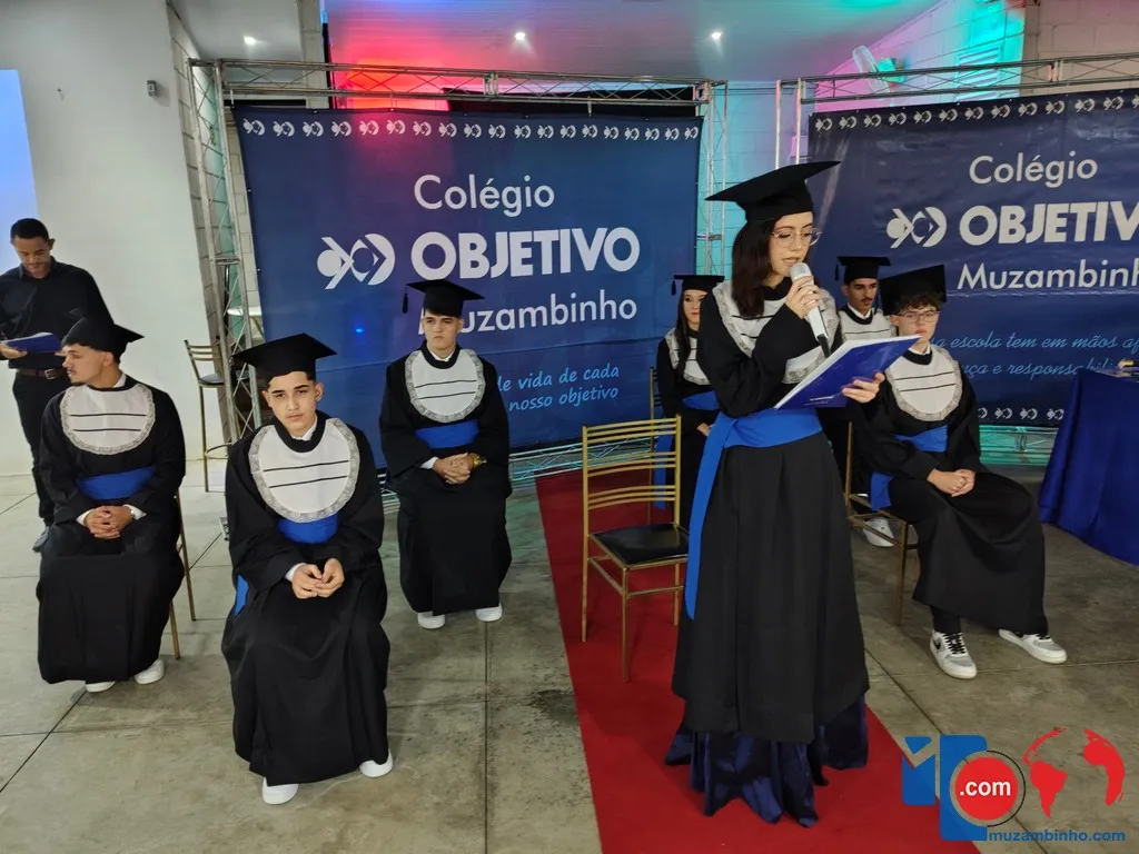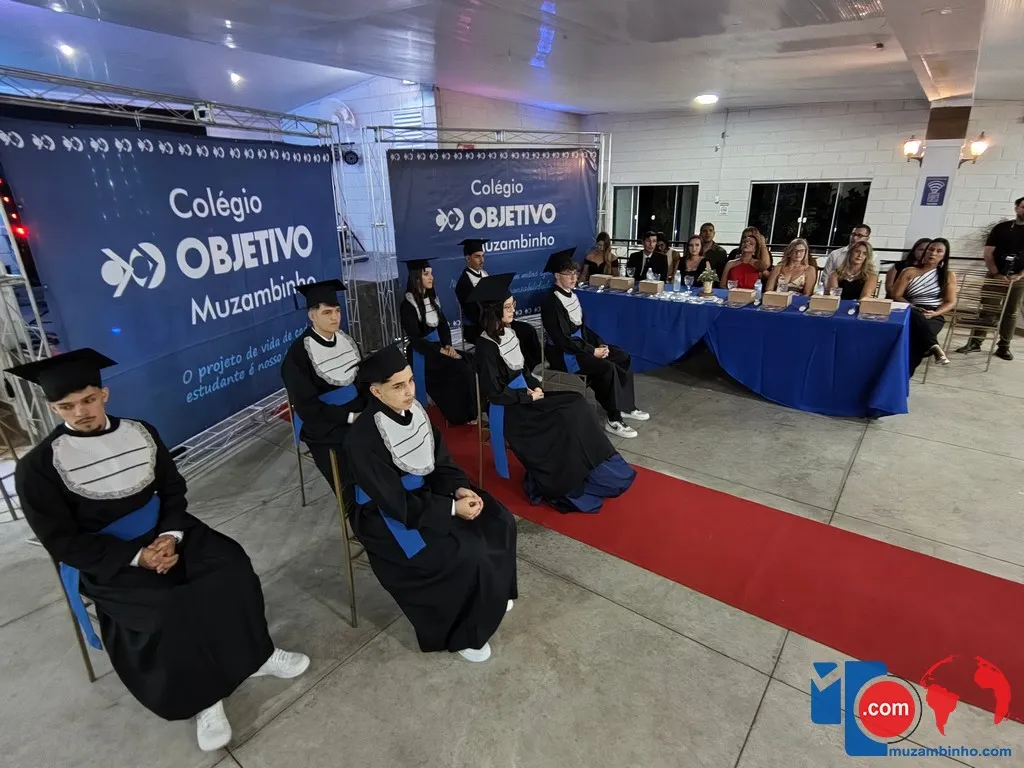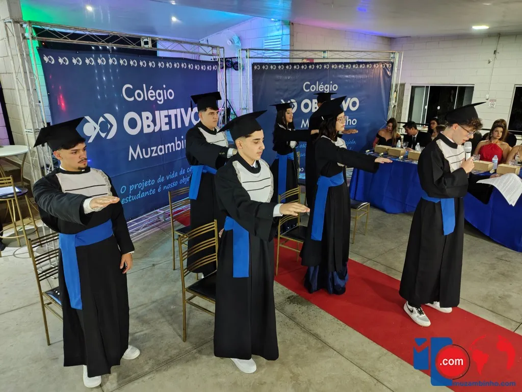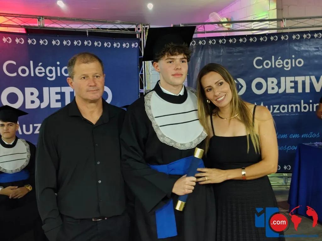 O Colégio Objetivo de Muzambinho realizou, na noite desta sexta-feira, 19 de dezembro de 2025, a formatura do Ensino Médio da instituição, em uma cerimônia histórica realizada na Estância Marinho Menezes. O evento marcou um momento singular para a educação do município, reunindo alunos, famílias, educadores e autoridades em uma noite de emoção, reconhecimento e celebração.
