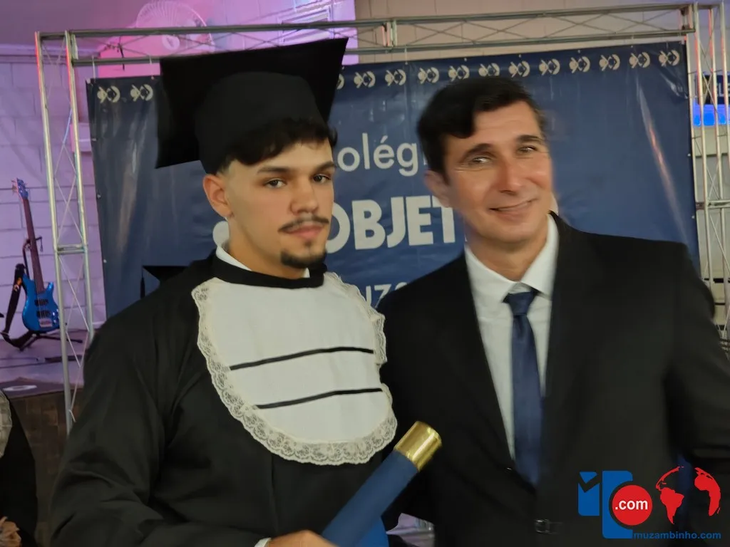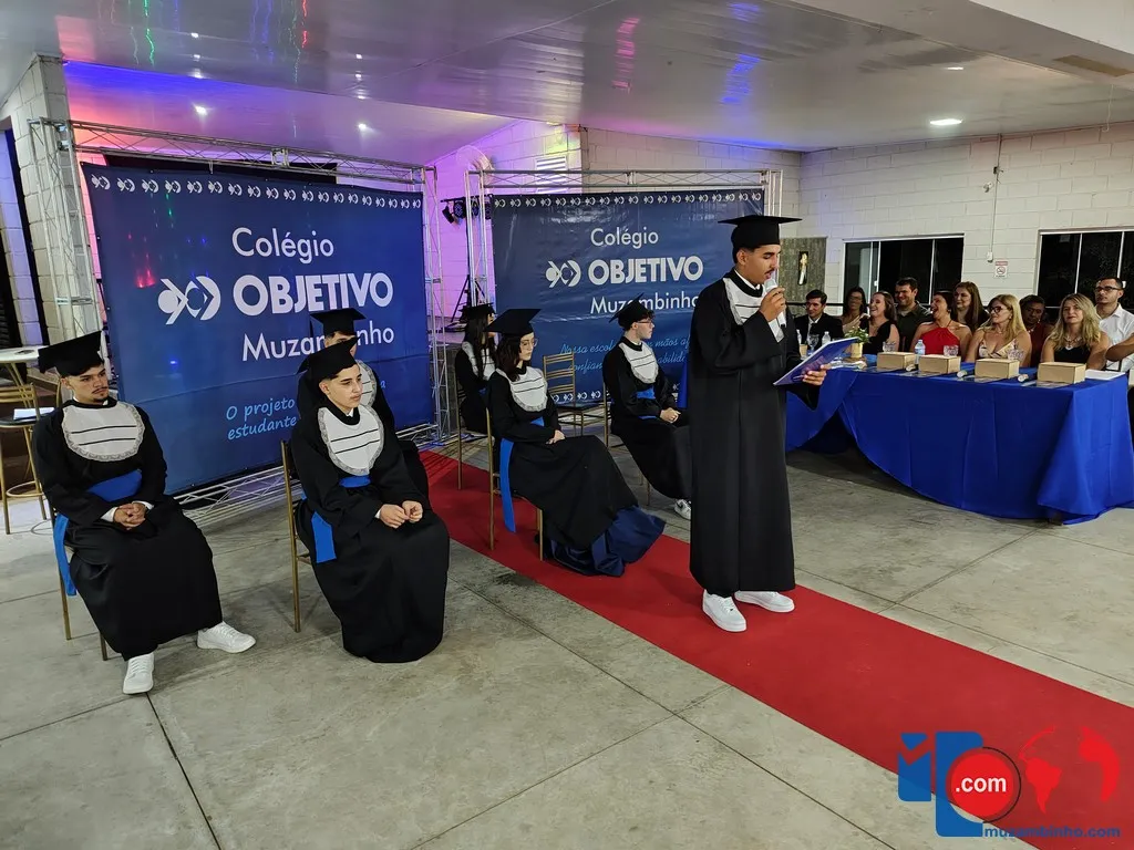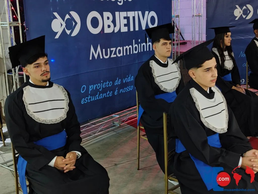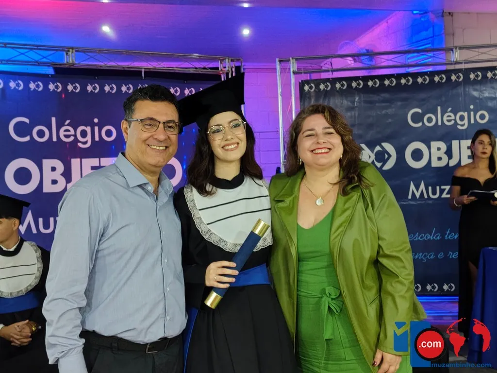 O Colégio Objetivo de Muzambinho realizou, na noite desta sexta-feira, 19 de dezembro de 2025, a formatura do Ensino Médio da instituição, em uma cerimônia histórica realizada na Estância Marinho Menezes. O evento marcou um momento singular para a educação do município, reunindo alunos, famílias, educadores e autoridades em uma noite de emoção, reconhecimento e celebração.