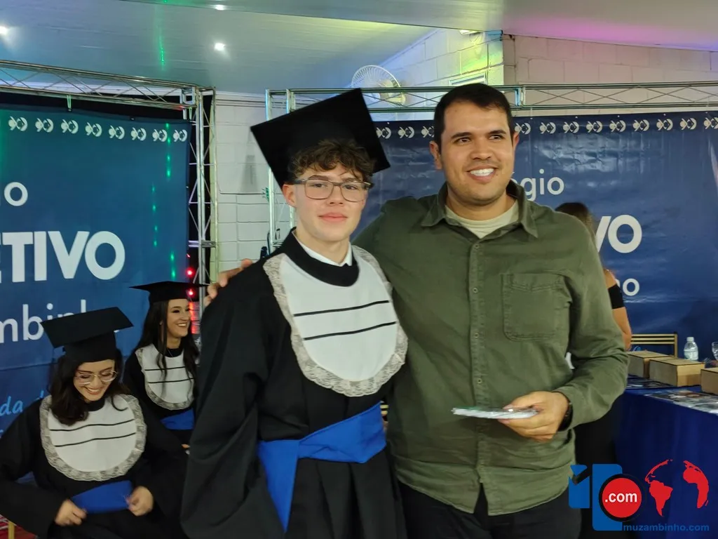 A solenidade destacou o pioneirismo de alguns dos formandos, que construíram uma trajetória acadêmica integral dentro do Colégio Objetivo, desde os anos iniciais até a conclusão do Ensino Médio. Esse marco reforça a consolidação da instituição como referência educacional em Muzambinho, ampliando seu legado e fortalecendo seu compromisso com a formação integral dos estudantes.