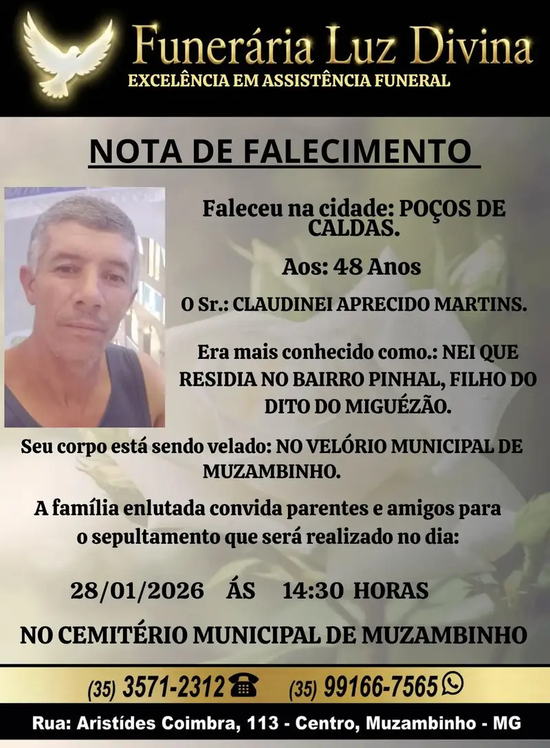 Mais Artigos DestaqueEventos e FestasParceiros Assembleias do Sicredi se aproximam e reforçam a importância da participação dos associados DestaqueObituário Faleceu aos 93 anos a Sra. Leonizia Aro DestaqueEventos e Festas Que dia começa o Carnaval neste ano? Confira as datas da foliaDestaqueObituárioFaleceu aos 48 anos o Sr. Claudinei Aparecido Martins Redação28 de janeiro de 20261min0Informou a Funerária Luz DivinaA família enlutada, nossos sinceros sentimentos de pesares, que Deus os abençoe e conforte. Post Views: 31EnterroFuneráriaLuz DivinamorteobituárioSepultamentoVelório