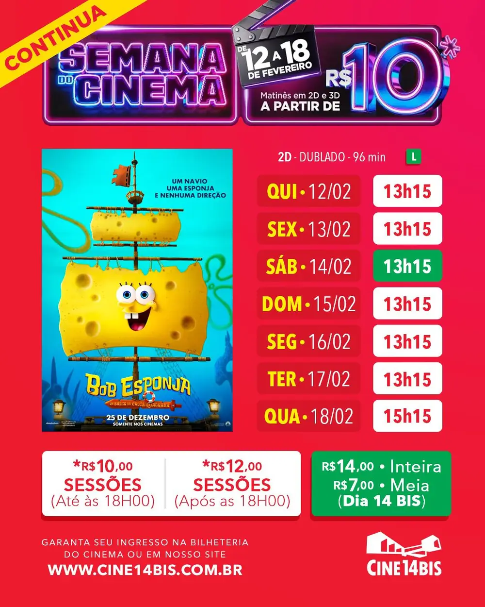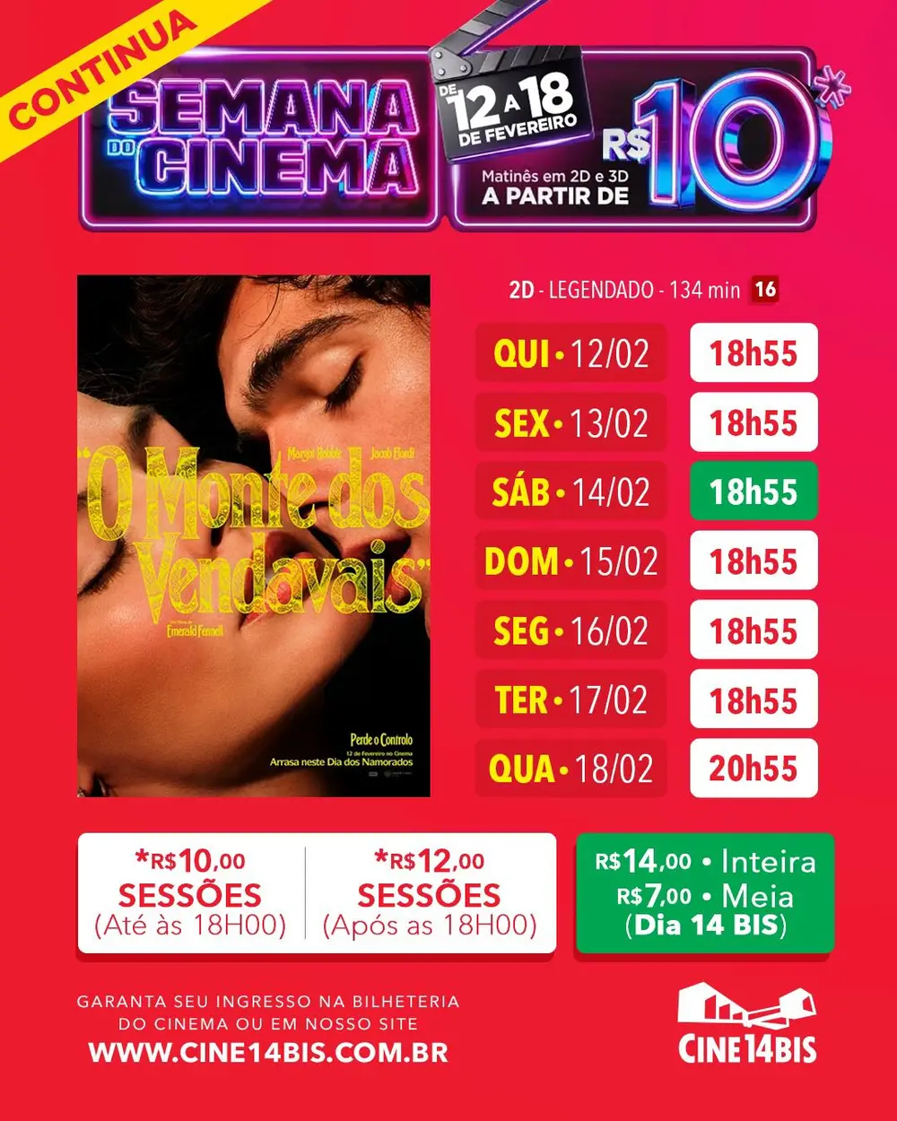 Cine14Bis: Semana do Cinema com ingressos a R$10. Vem pro cinema!