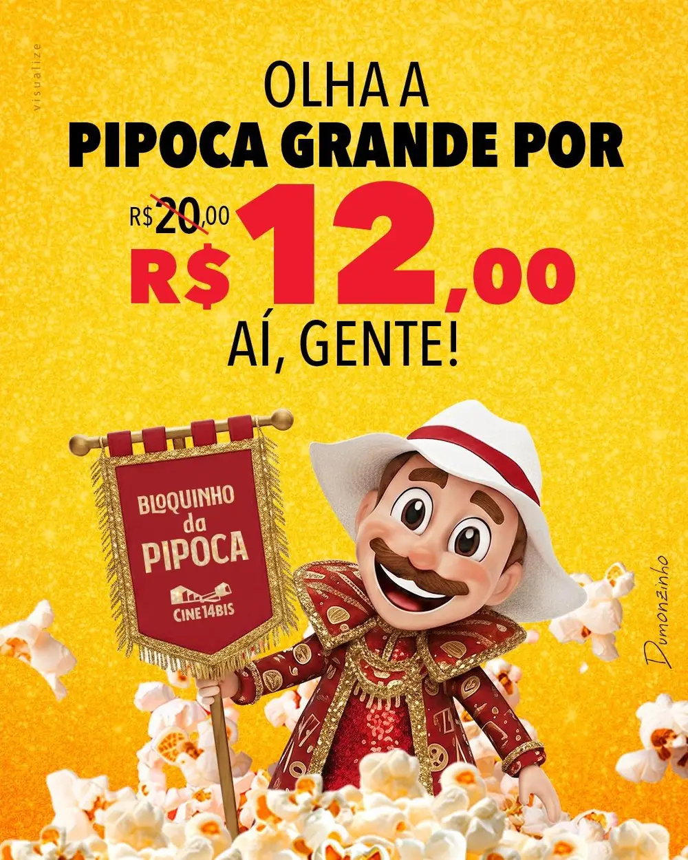 E para a experiência ficar completa: PIPOCA GRANDE por apenas R$ 12,00!